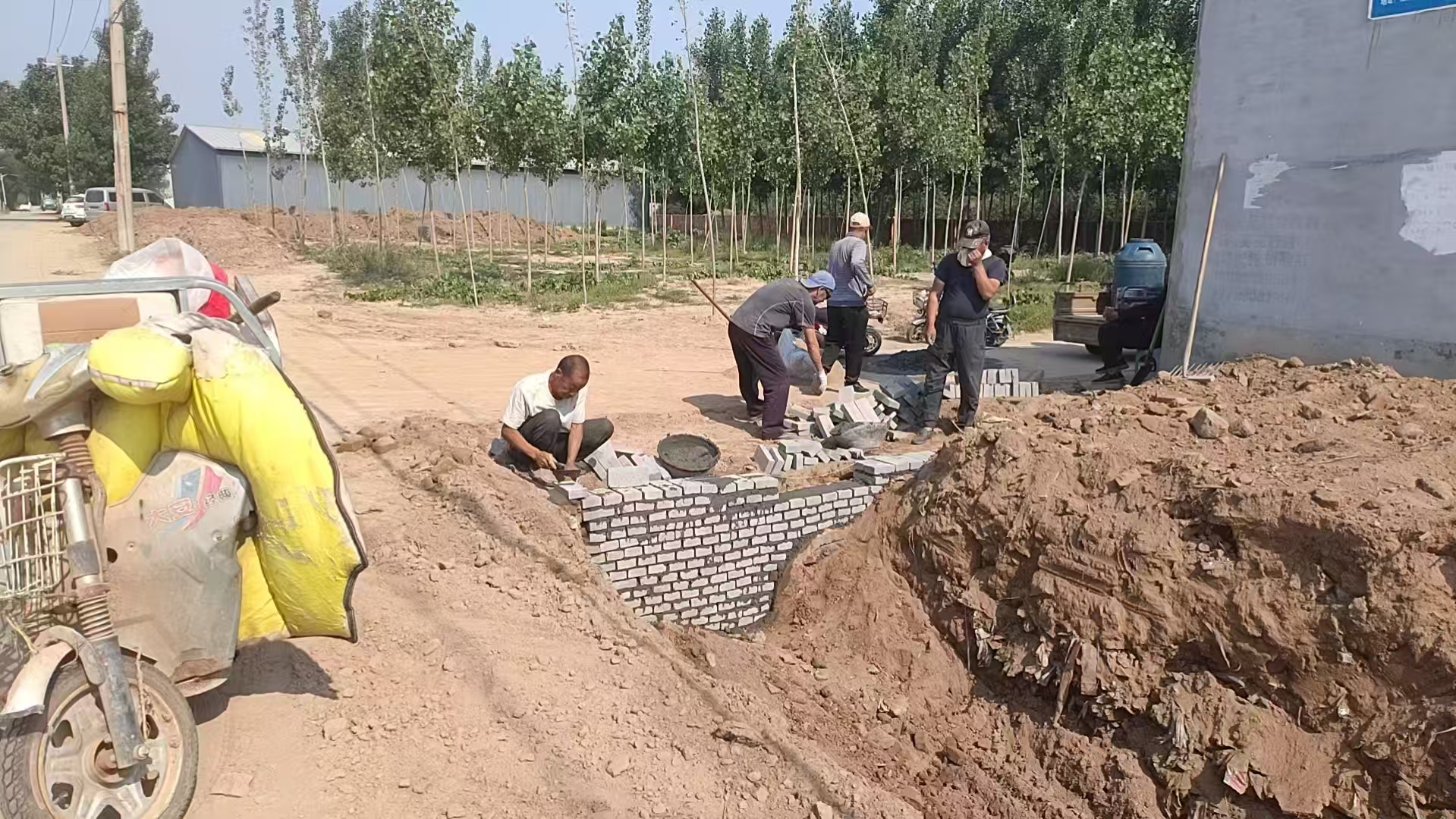 提升排澇能力,夯實防汛基礎。北午村、北杏園等村集中開展溝渠清理整治工作,采取“機械+人工”協同作業模式,組織大型機械清理主干溝渠,發動黨員群眾對田間支渠、排水口開展拉網式排查疏通,并對溝渠兩側護坡實施加固工程。得朝村同步推進排水管網鋪設工作,進一步完善基礎設施。為確保長效管理,各村建立健全常態化巡查維護機制,配備專職巡查人員開展日常檢查,切實保障溝渠排水暢通。