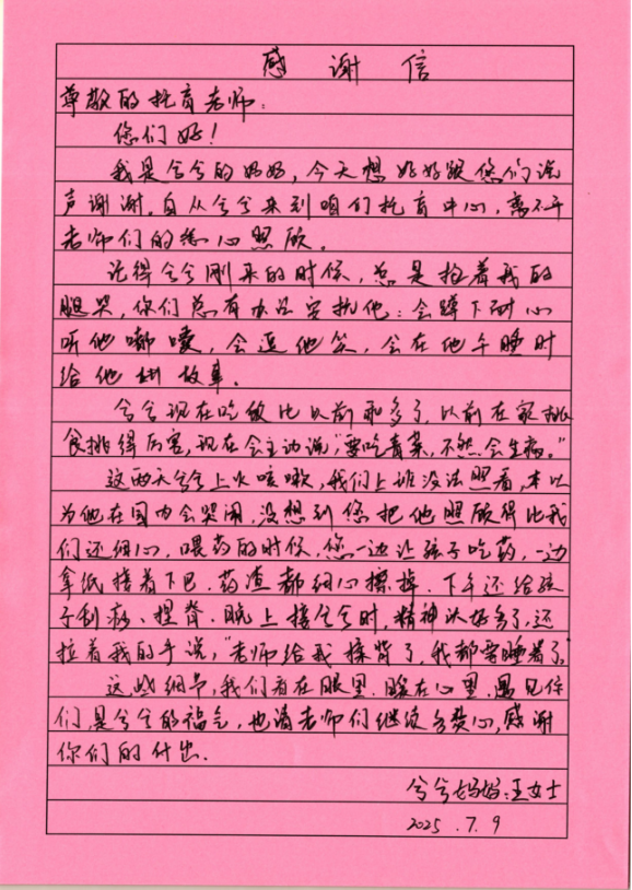 孩子的健康成長是家園合力共同教育的結果,家長們的口碑就是對我院托育中心的肯定!近期,衡水市中醫(yī)醫(yī)院托育中心收到了來自家長的感謝信及鮮花、錦旗等,包含著家長真摯的感恩與感謝,蘊含著對托育中心愛的禮贊。這份榮譽也是家長朋友對托育中心的褒獎與信任,讓孩子們在充滿愛的童年里健康、快樂、自信、陽光地成長。