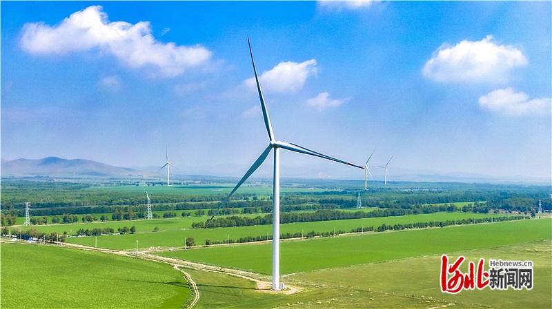 7月6日拍攝的沽源縣閃電河鄉(xiāng)一處風(fēng)電場。 河北日報記者 田 明攝