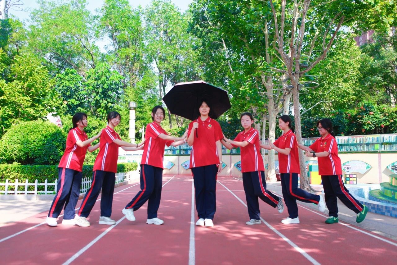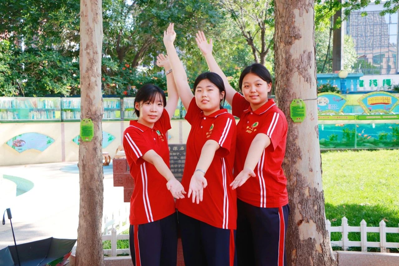 同學們用力擁抱,一邊在校園合影留念,一邊分享彼此的假期計劃!