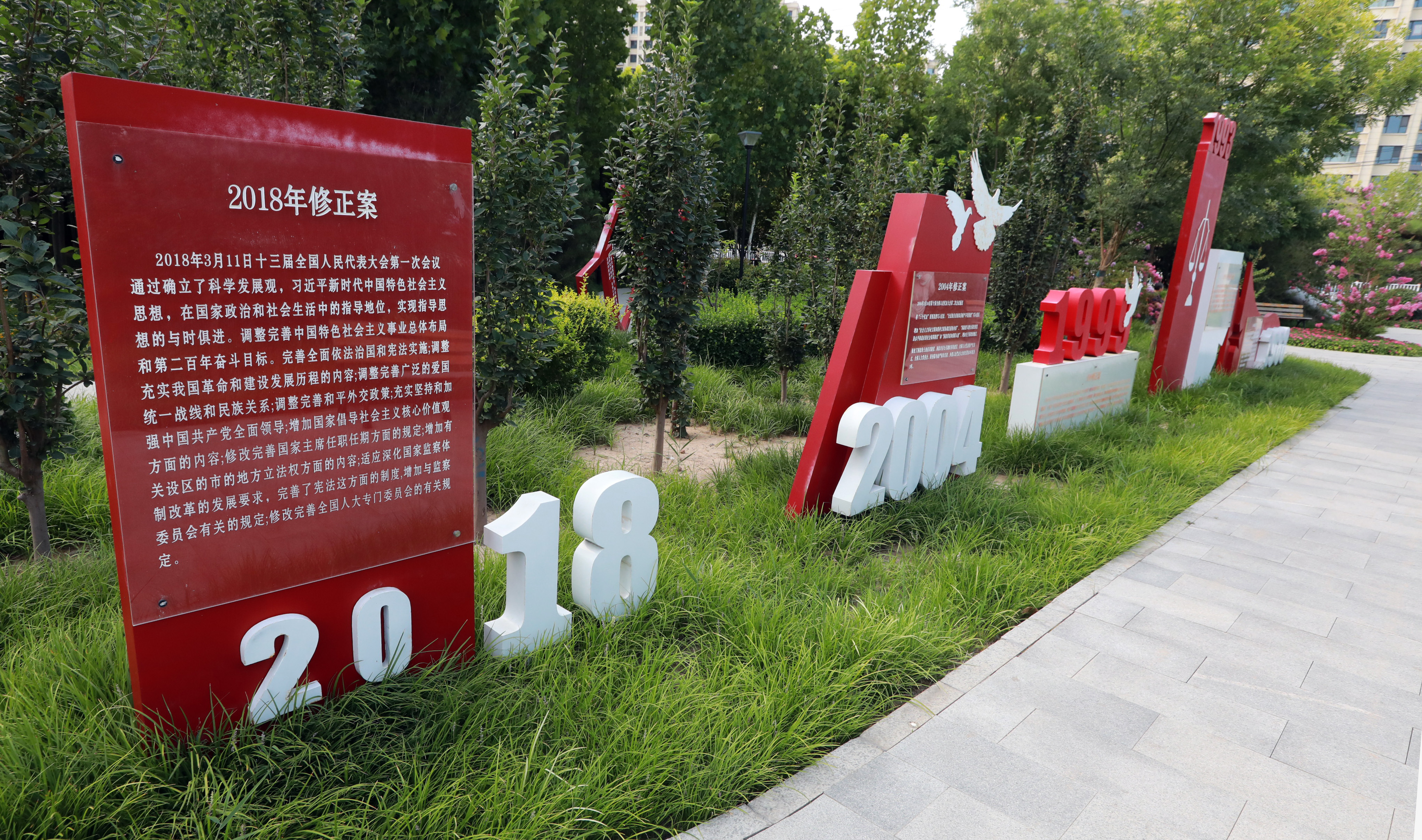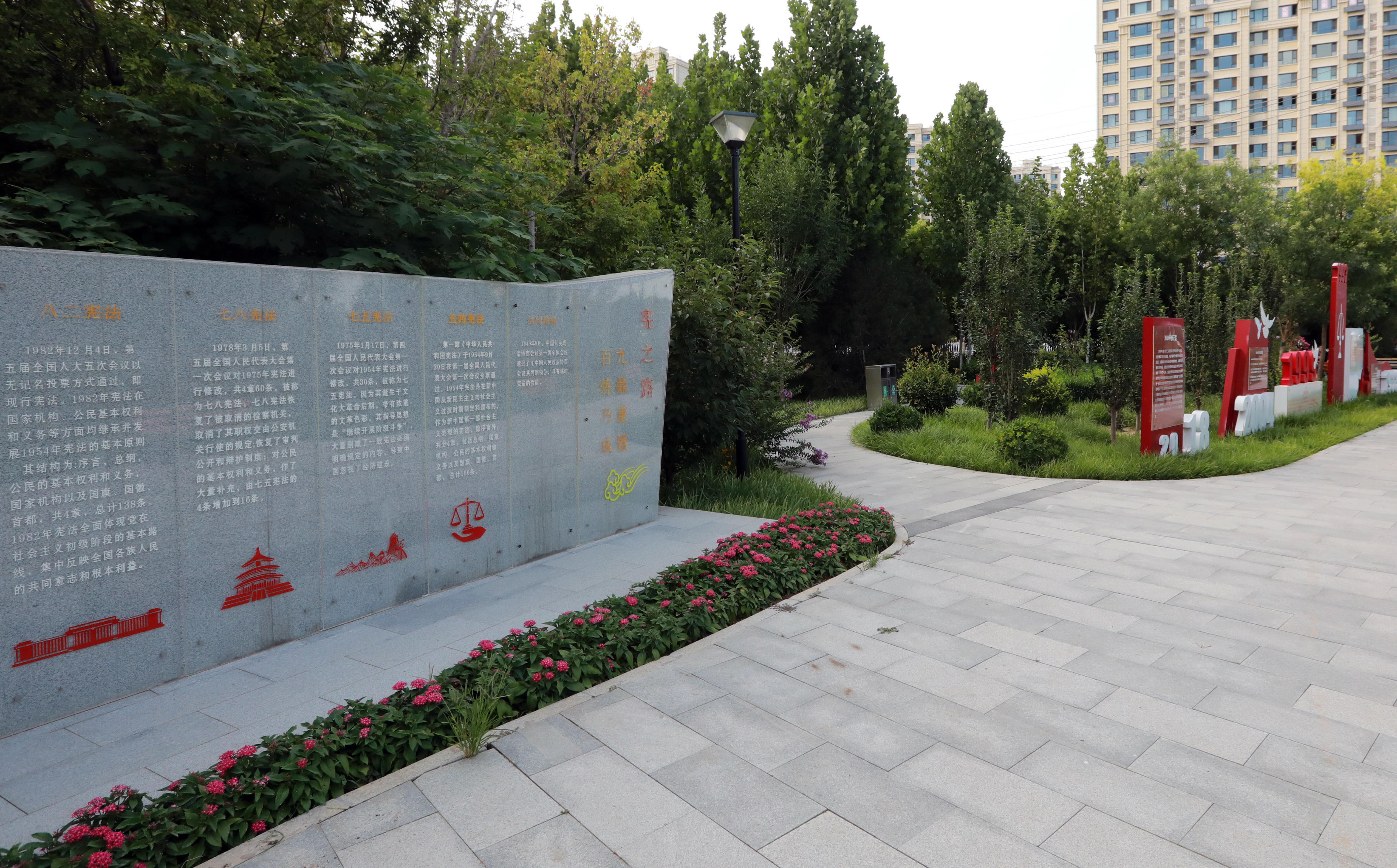憲法園位于市區崇文路與中心南大街交叉口西南角,占地面積2276平方米。公園以普及憲法知識為主題,將“學法、知法、守法、用法“的理念融入到口袋公園中。園內喬、灌、草、花合理搭配種植,綠化景觀層次分明,錯落有致。公園內沿路擺放書本雕塑、中國憲法修正案時間為節點系列小品、憲法之路雕塑、學法、尊法小品,以雕塑為載體,開展法制宣傳教育。打造了一處集知識性、藝術性、觀賞性于一體的口袋公園。