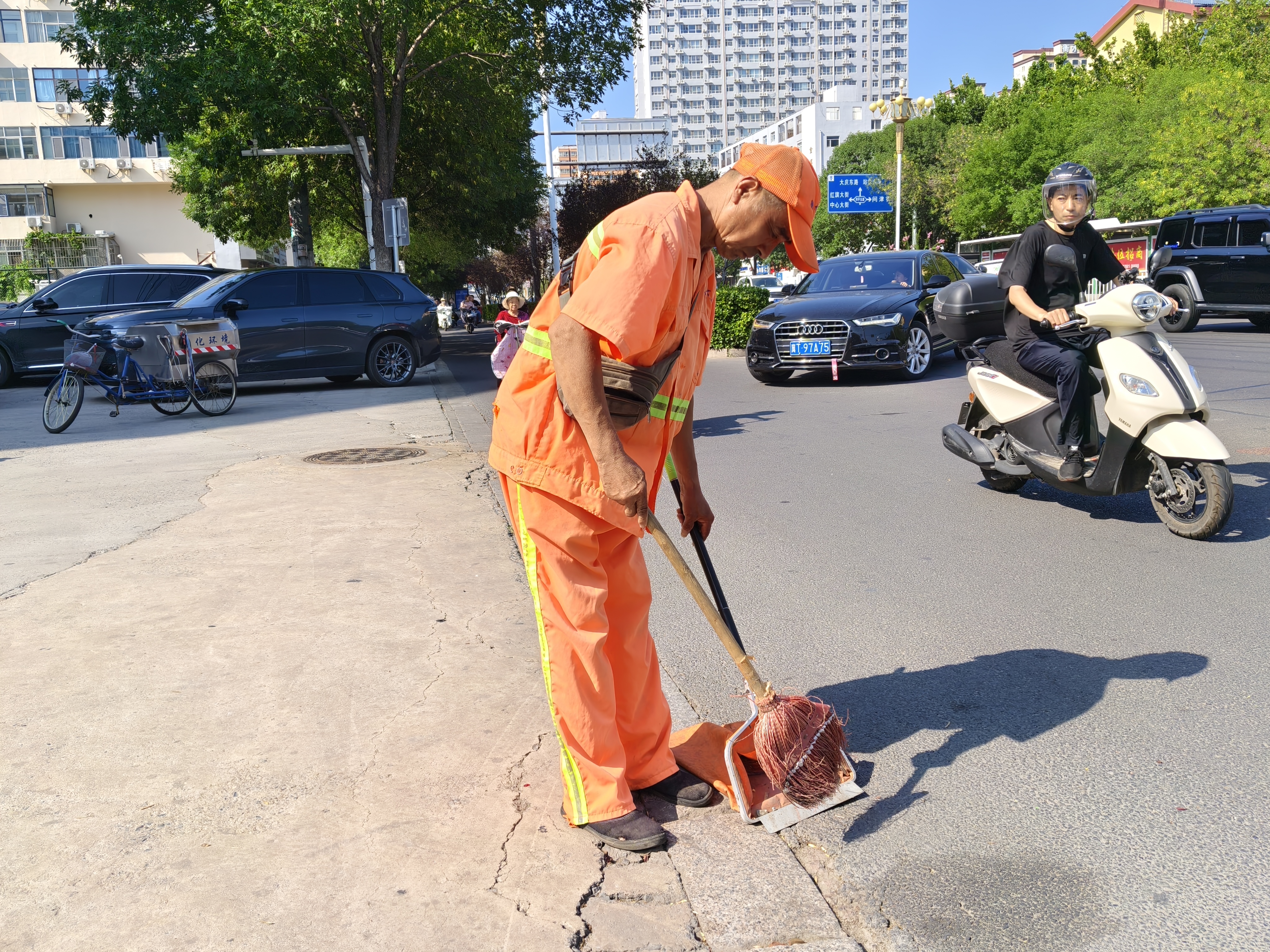 衡水街頭還有許多這樣的環衛工人,他們身著“橘色戰袍”,在烈日的無情炙烤下,用腳步丈量滾燙的街道,用汗水沖刷城市的塵埃。他們一次次彎腰、清掃,是與高溫的對抗,更是對潔凈的執著堅守。