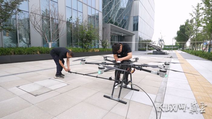 工作人員調試搭載智能清潔系統的無人機。長城網·冀云客戶端記者 張天虎 攝
