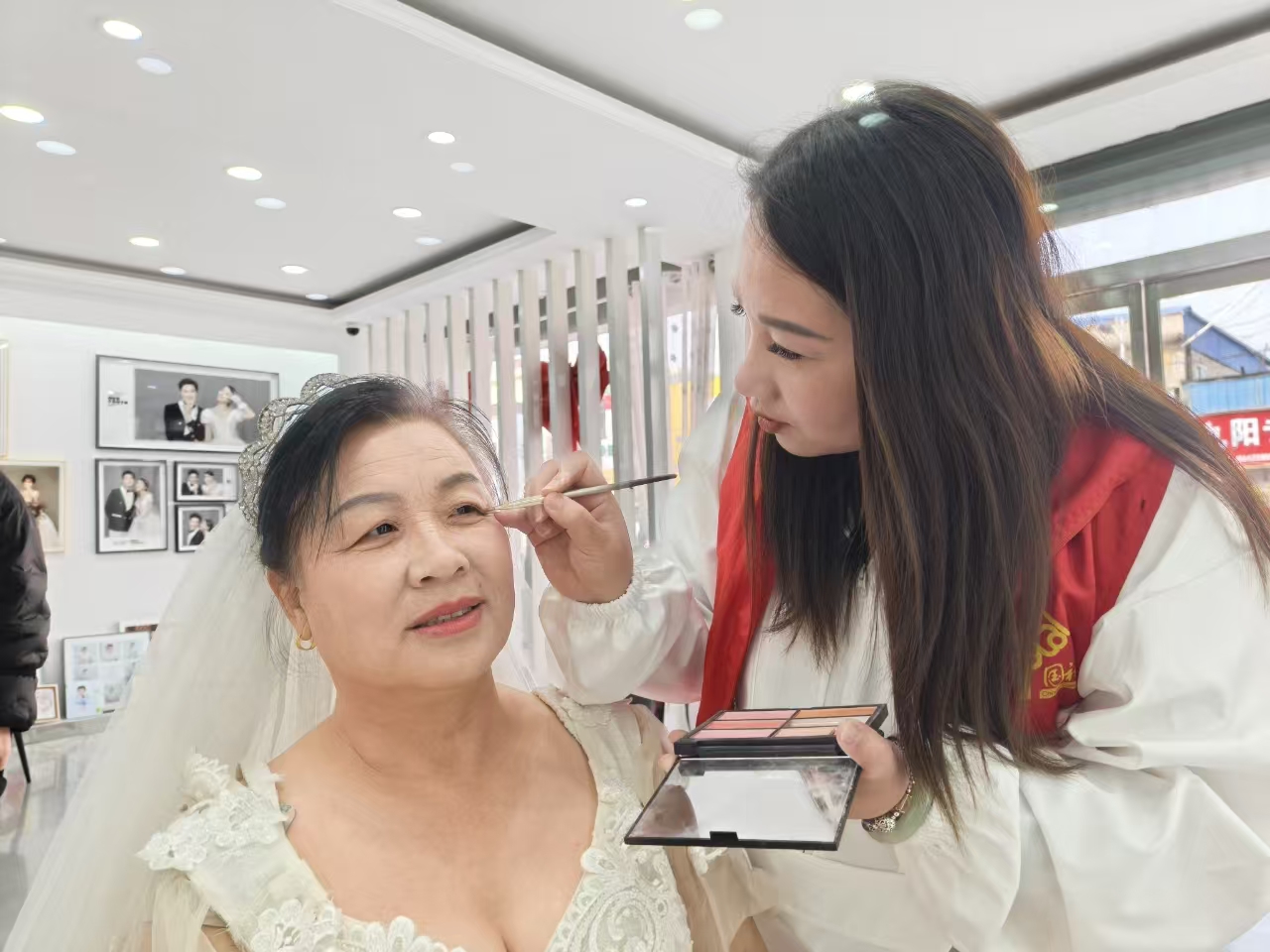 據(jù)悉,當(dāng)天共有6對60歲以上的老年夫妻參與拍攝?!敖Y(jié)婚這么多年,第一次化妝穿禮服,第一次拍這么正式的結(jié)婚照。感謝社區(qū),讓我們有機(jī)會重溫年輕時的美好時光?!币晃粎⑴c活動的居民感慨道。