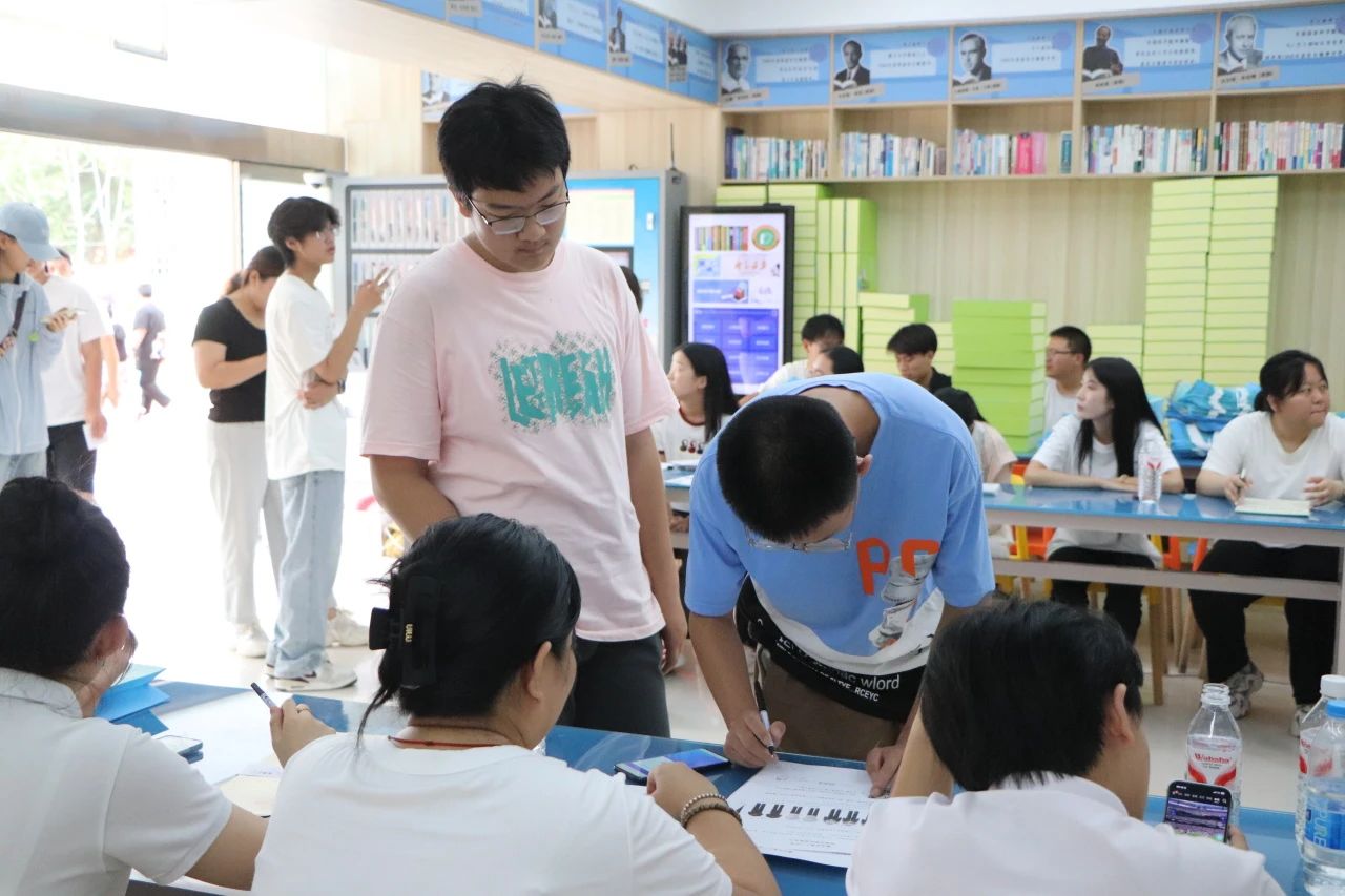 一份份通知書承載著希望,靜待一顆顆憧憬著未來的心。新生禮物設(shè)計(jì)精美、別具一格,蘊(yùn)含著學(xué)校的深情厚誼,承載著對(duì)學(xué)子未來的美好祝愿。老師們?cè)缭绲却陬I(lǐng)取點(diǎn),熱情地迎接每一位新生,細(xì)致地指導(dǎo)大家填寫資料,耐心解答疑問。嚴(yán)謹(jǐn)而溫和的態(tài)度,令同學(xué)們對(duì)這座校園有了美好的第一印象。