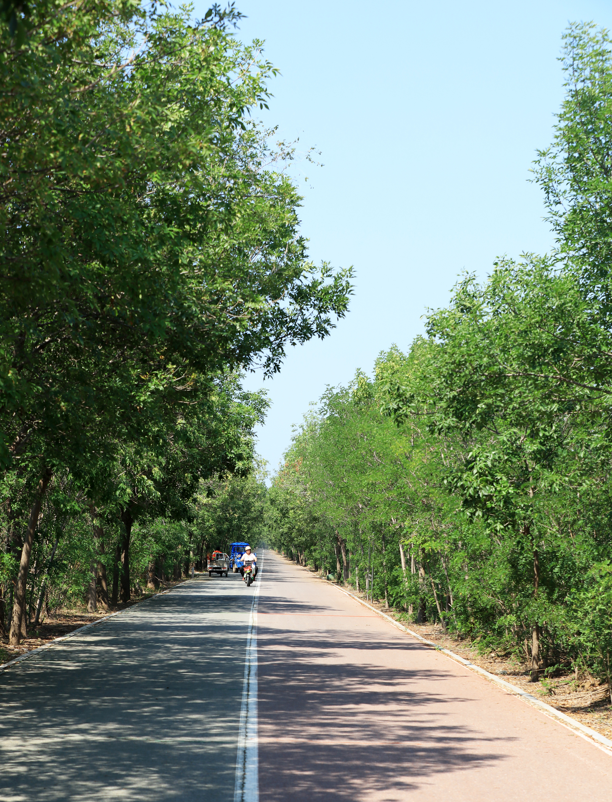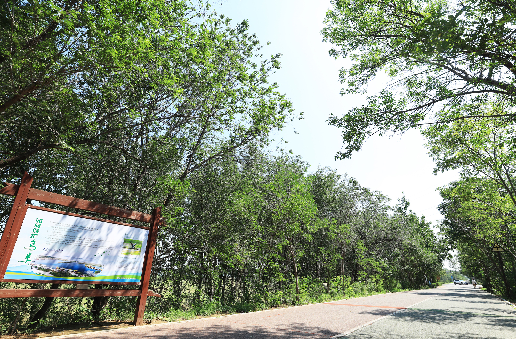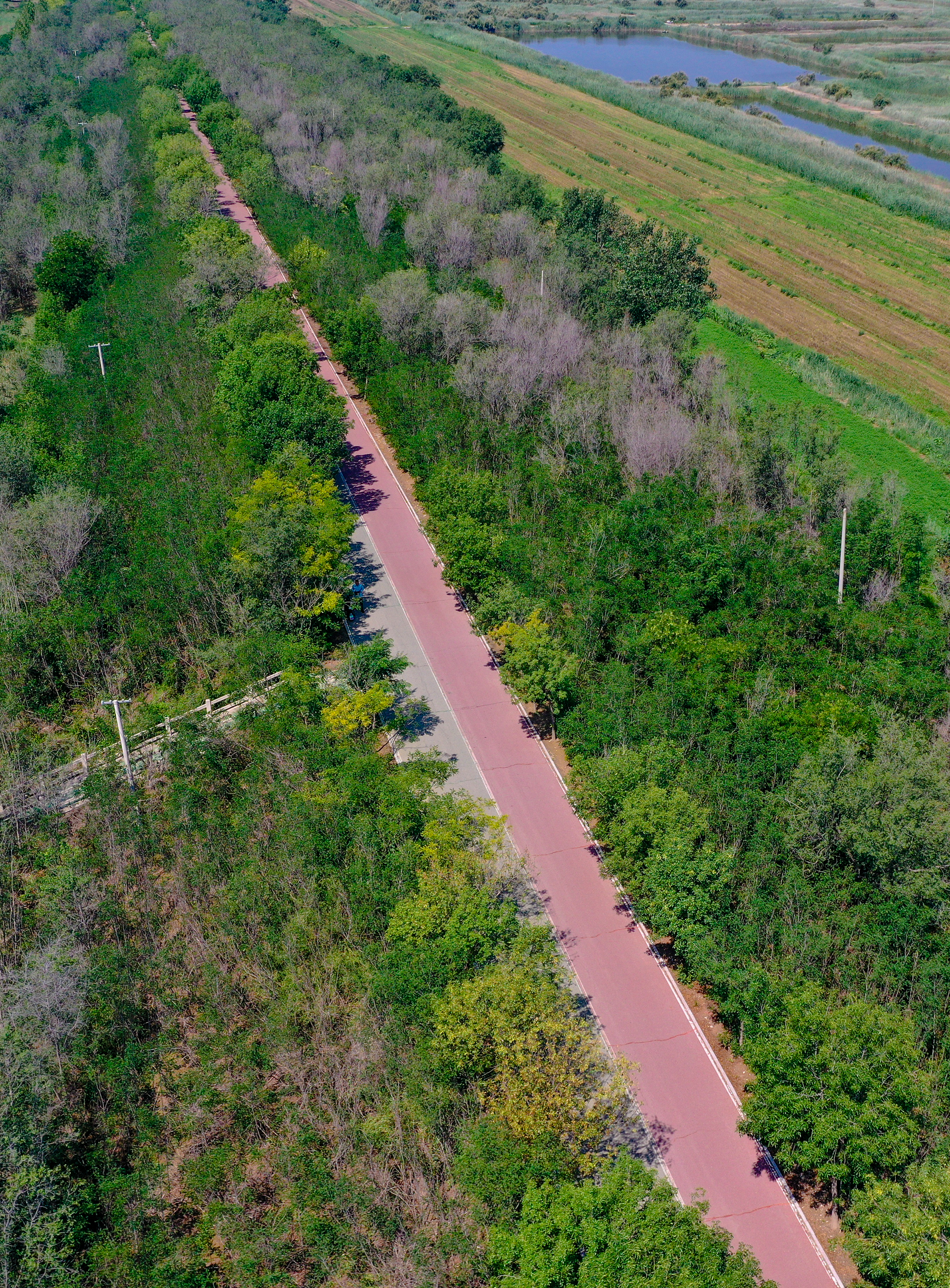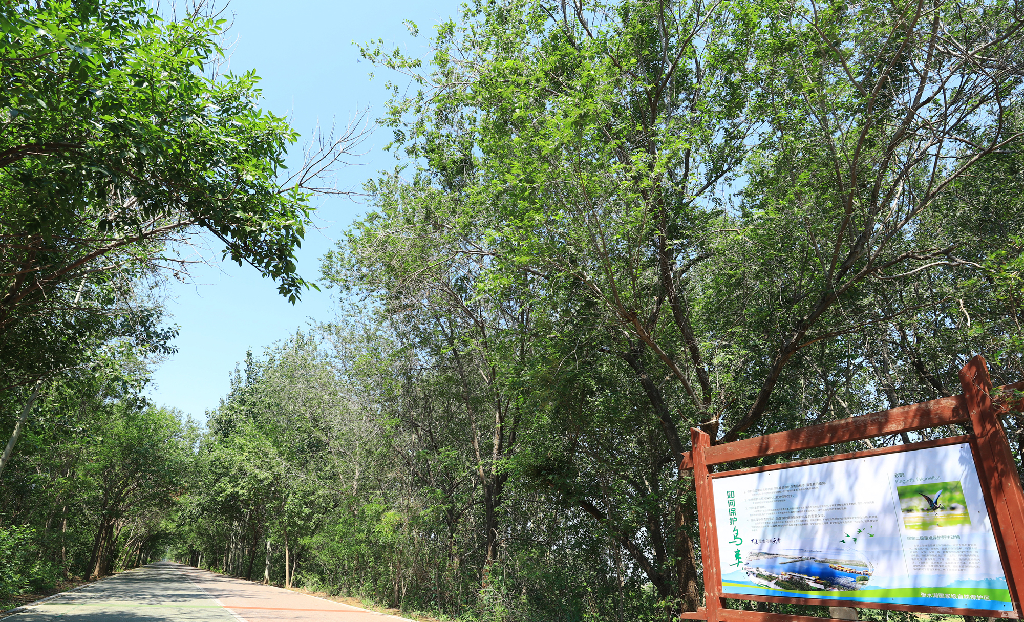 七公里的衡水湖健步路,藏在濃蔭深處。道旁喬木舒展枝葉,灌木綴滿新綠,陽光穿過層層疊疊的葉隙,在路面灑下斑駁的光點。風(fēng)過時,樹葉沙沙作響,裹挾著草木與湖水的清潤氣息,漫過整條長徑。