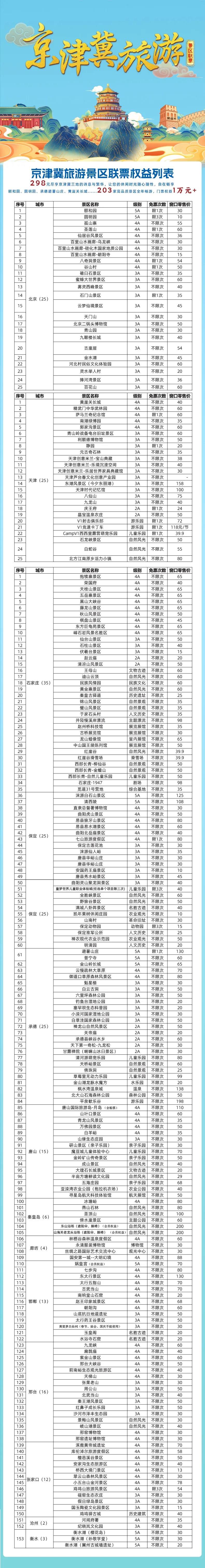 京津冀旅游景區聯票6月27日起已面向全國游客發行。聯票由京津冀三地文旅部門指導,市場化運作。游客持聯票年卡,可暢游三地203家熱門景區,其中186家景區一年內可無限次游覽。