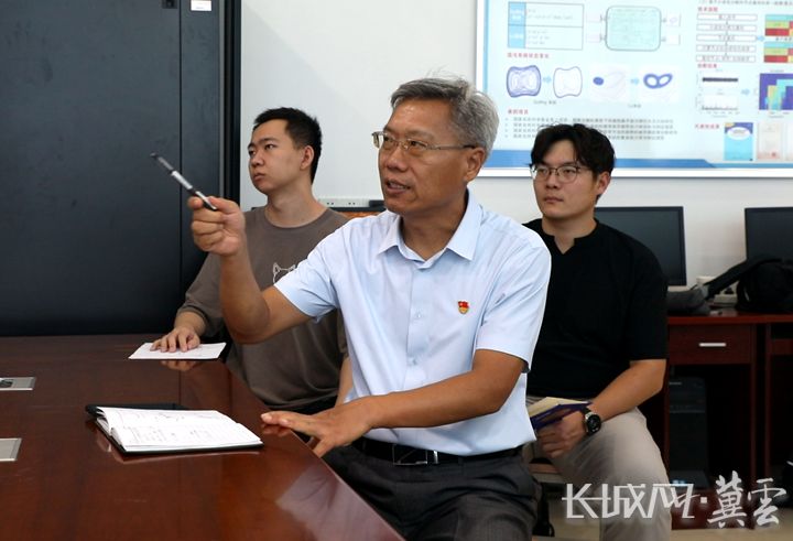 石家莊鐵道大學(xué)郭京波盾構(gòu)機(jī)研發(fā)團(tuán)隊(duì)成員正在進(jìn)行技術(shù)研討。長(zhǎng)城網(wǎng)·冀云客戶端記者 白亞軍 攝