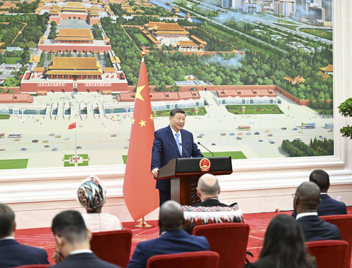 儀式結束后,習近平在北京廳對使節們發表講話。