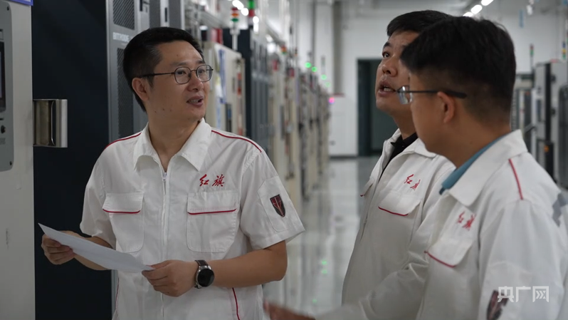 技術人員討論轉子鐵芯安裝(央廣網記者 舒震 攝)