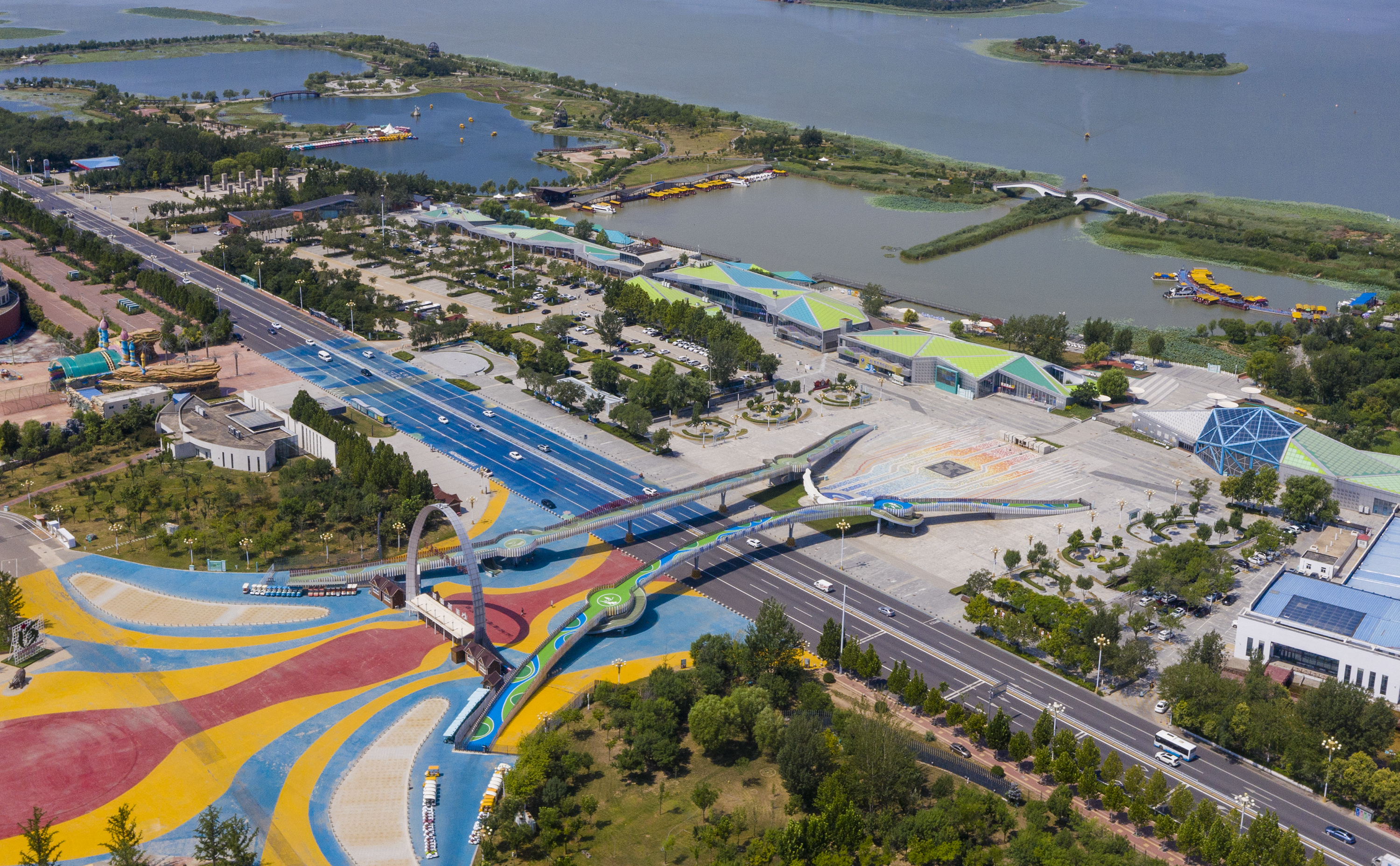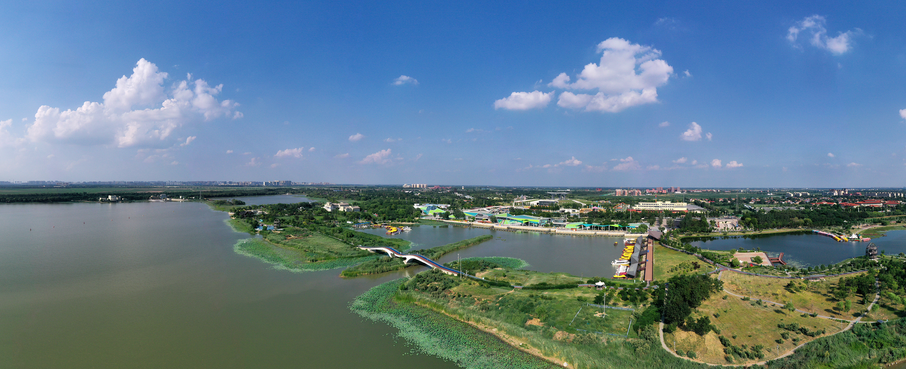 高空視角下,水、綠、城、人和諧共生,衡水湖及周邊景點在晴日里展現(xiàn)出的生態(tài)之美與人文活力,展現(xiàn)著城市的自然之美與活力風(fēng)采。