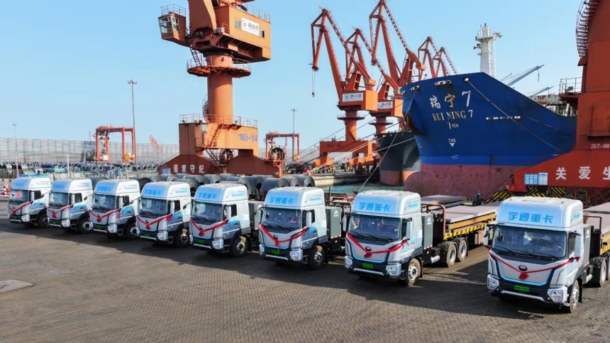 唐山港京唐港區(qū)的新能源重卡。唐港股份供圖