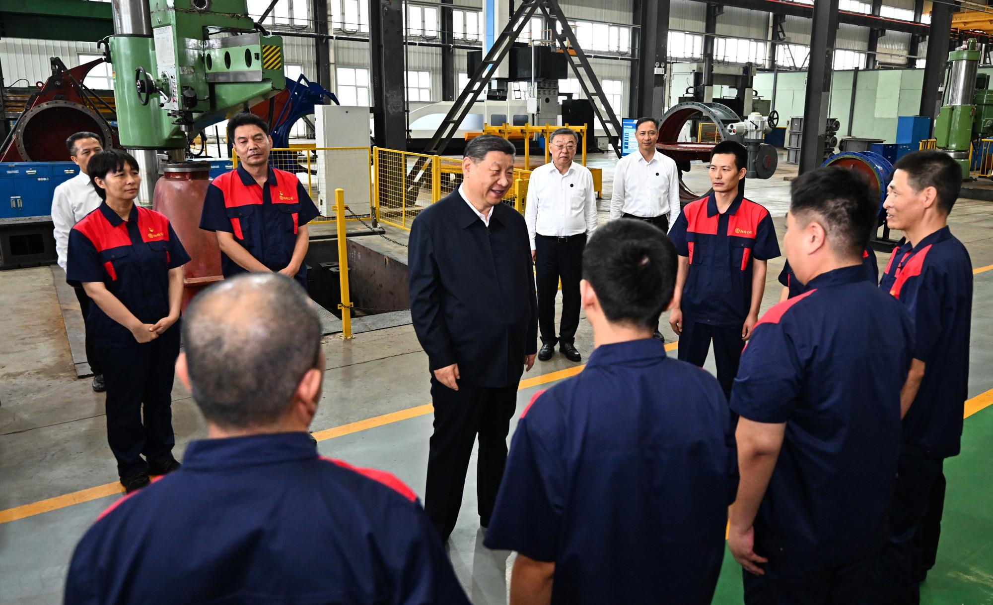 △2025年7月7日,習(xí)近平總書記在山西陽(yáng)泉閥門股份有限公司考察時(shí),同企業(yè)員工親切交流。