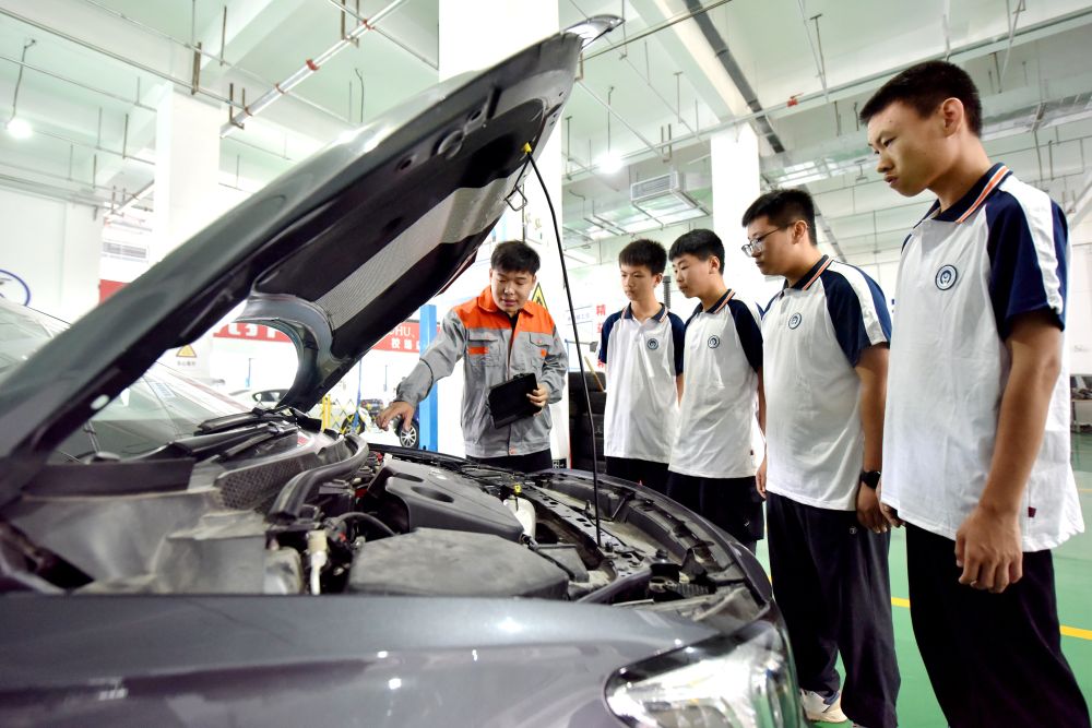 2024年6月7日,河北省邢臺市威縣職業技術教育中心教師指導學生學習汽車維修技術。近年來,威縣加大職業技術人才培養力度,通過與企業聯合辦學,創新校企合作、定向培養、工學結合等辦學模式,拓寬職業教育畢業生就業渠道。