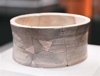 “長安二千三百里——雄安古州城遺址考古成果展”展出的陶量。新華社記者 李賀 攝
