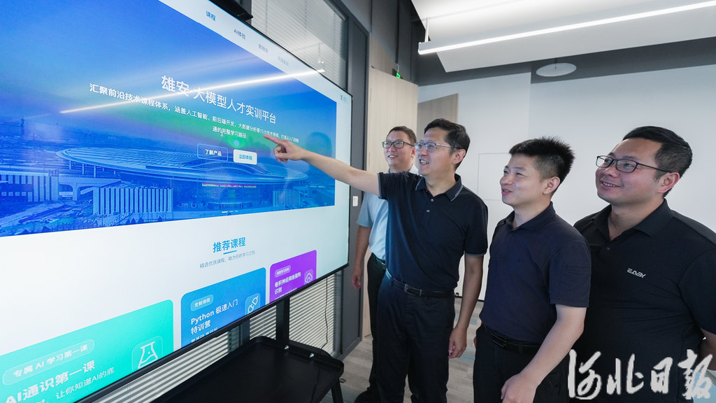 “目前,大模型人才實訓平臺已搭建完成,里面涵蓋人工智能、前后端開發、大數據分析等15個技術領域,打造從入門到精通的完整學習路徑。”7月3日,在雄安人工智能產業園內,雄安華清智言科技有限公司(以下簡稱“華清智言”)創始人李強,跟工作人員討論公司剛剛開發完成的大模型人才實訓平臺完善工作。