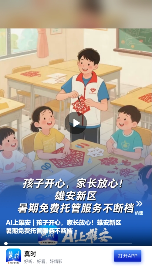來(lái)源:冀時(shí)客戶端原標(biāo)題:AI上雄安 | 孩子開(kāi)心,家長(zhǎng)放心!雄安新區(qū)暑期免費(fèi)托管服務(wù)不斷檔