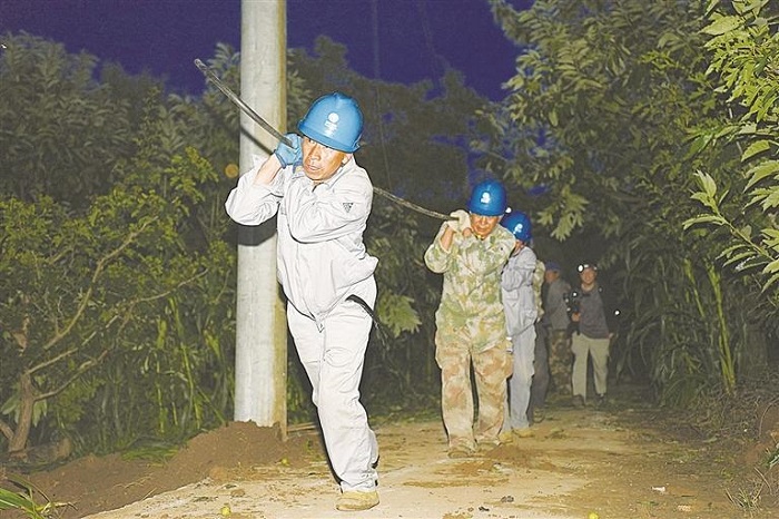 “昨天晚上,供電員工在新立的電桿上架線,下面就是流速極快、‘嘩嘩’作響的河水,可他們沒有絲毫畏懼,一心只為周邊村莊早日恢復(fù)供電。”一旁的村民感慨道。
