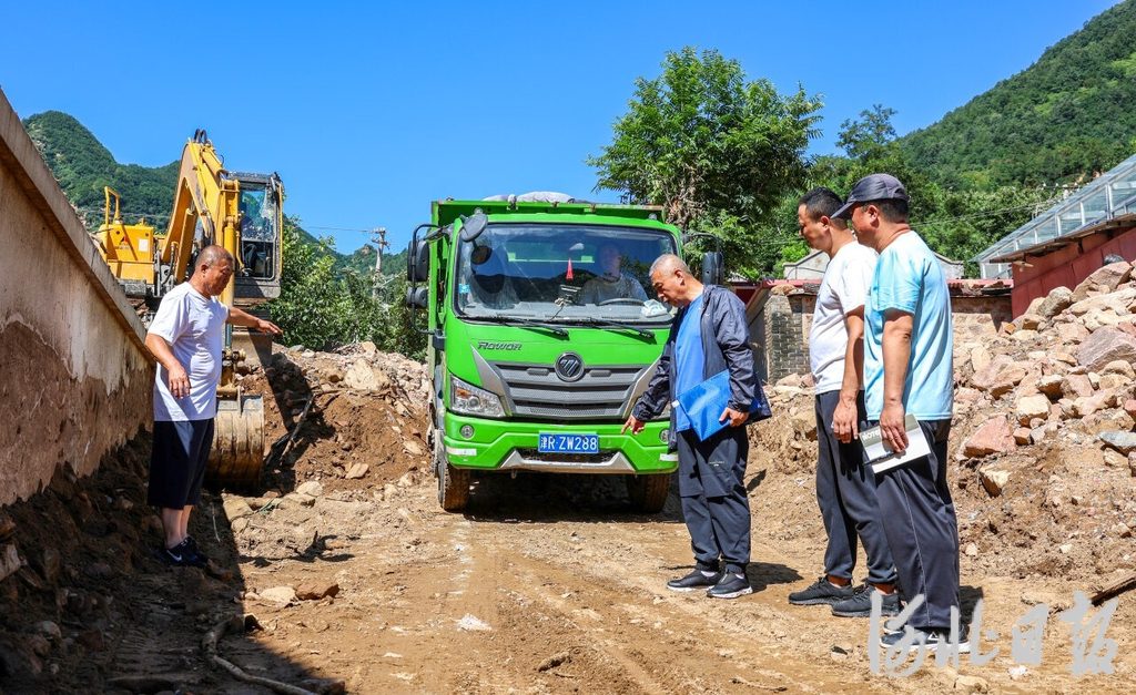 8月6日15時40分,承德縣路和礦業集團有限公司的2輛鉤機和2輛鏟車碾過泥濘開進興隆縣六道河鎮小關門村。市縣兩級農業農村局工作人員與企業施工隊迅速會合,共同組成一支幫扶工作組,幫助小關門村開展災后重建。