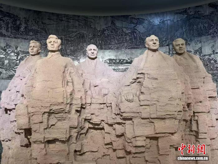 8月7日,白求恩·印度援華醫療隊紀念館中所建的印度援華醫療隊雕塑。 趙丹媚 攝