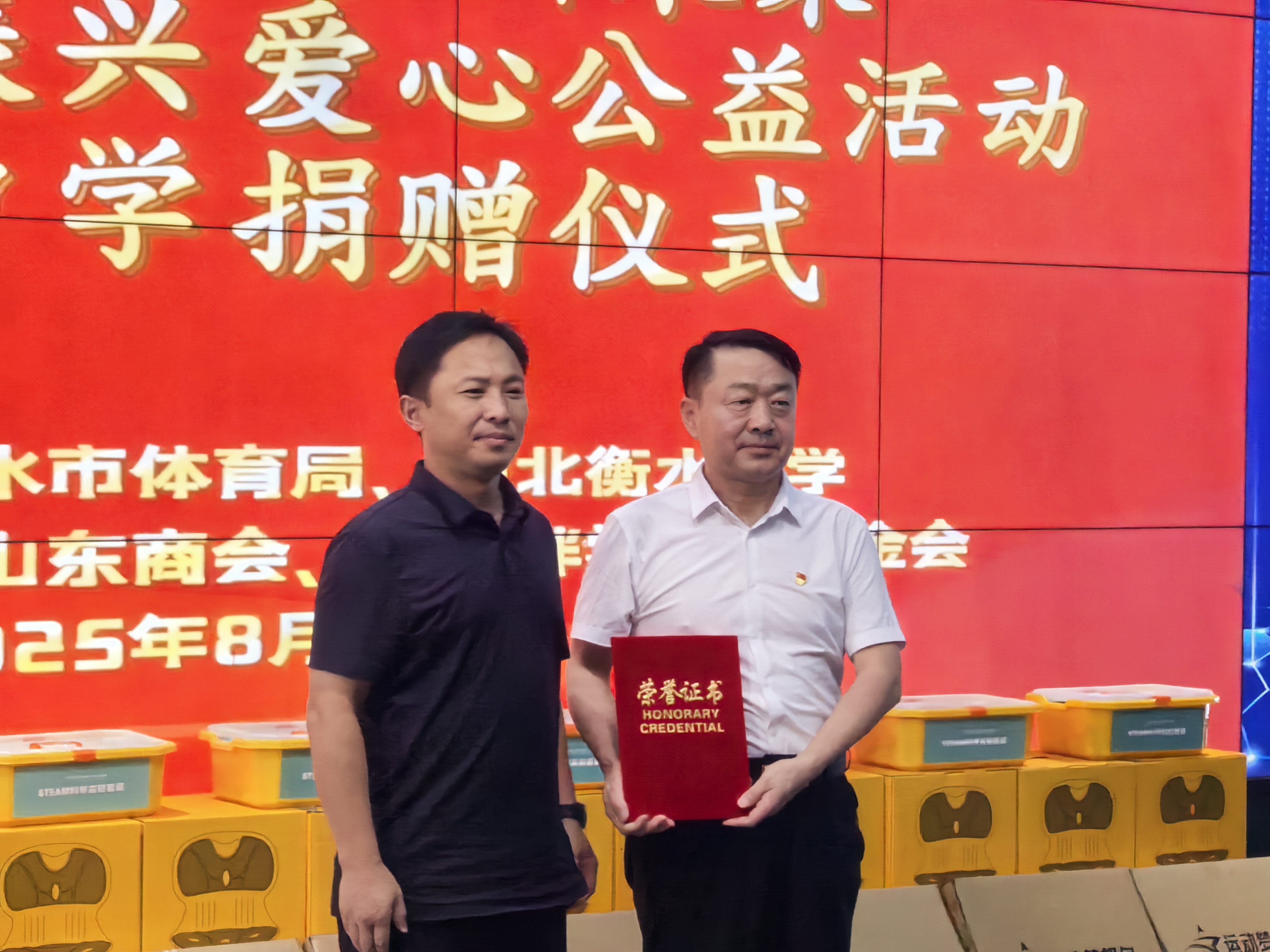 衡水市市體育局向衡水市山東商會、中閱伴學公益基金管委會頒發榮譽證書,以表誠摯的感謝。衡水市體育局相關負責人表示,受贈學校要不負期望,不負所托,將這批愛心物資及教育資源用在實處,加快推進桃城區教育數字化改革發展,全面提升師生信息素養,普及數字校園的建設與應用。