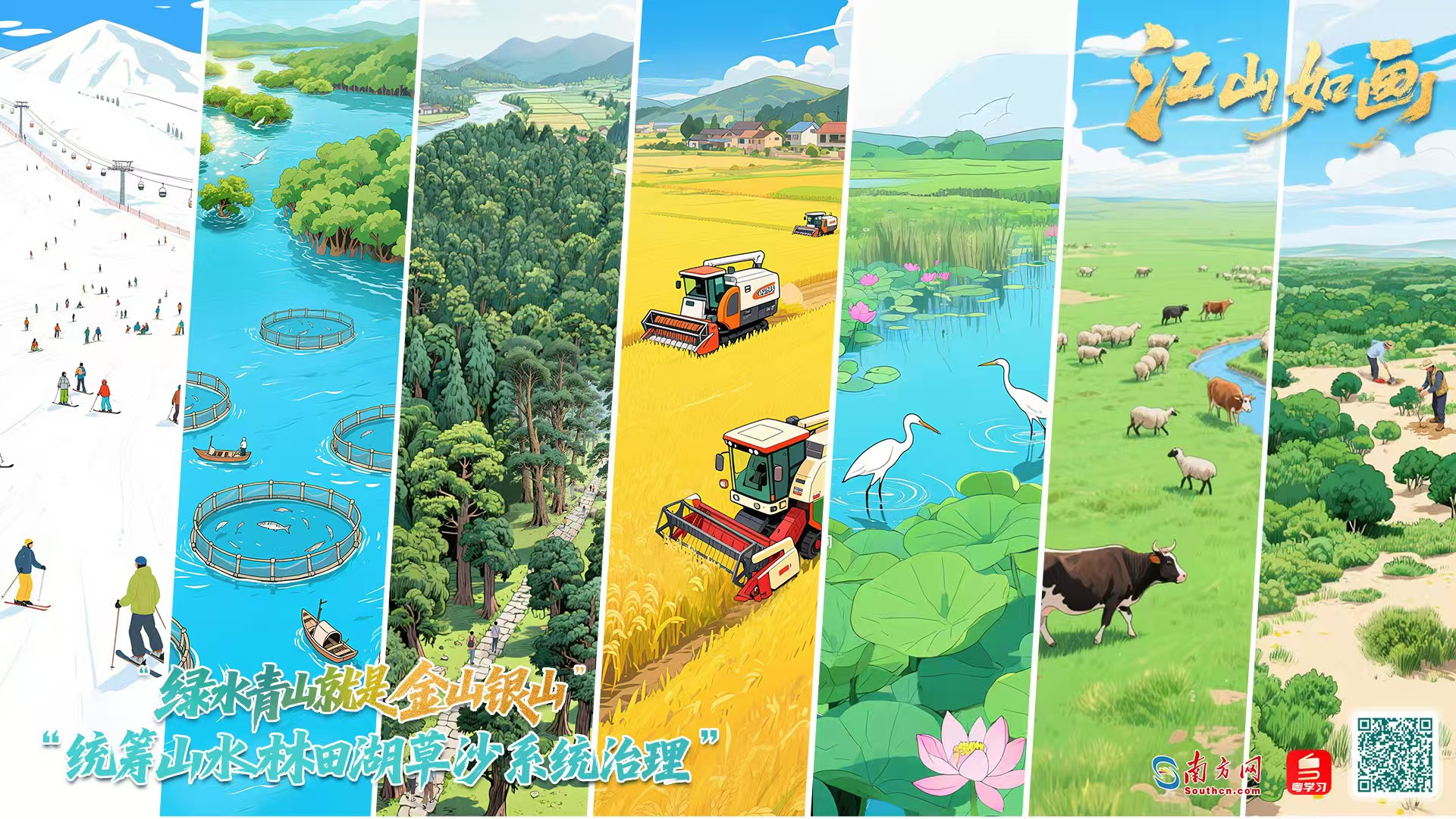 南方網(wǎng)、粵學(xué)習(xí)客戶端策劃制作“兩山”理念提出20周年紀(jì)念長(zhǎng)卷——《江山如畫》,選取習(xí)近平總書記曾實(shí)地考察過的湛江紅樹林、白洋淀、青藏高原等80余個(gè)地點(diǎn),沿海拔線一路攀升,描繪新時(shí)代“山水林田湖草沙一體化保護(hù)和系統(tǒng)治理”的生態(tài)文明建設(shè)新圖景。同步嵌入“習(xí)近平生態(tài)文明思想文庫”,立體呈現(xiàn)我國(guó)生態(tài)文明建設(shè)理論與實(shí)踐不斷深化、辯證統(tǒng)一的過程。