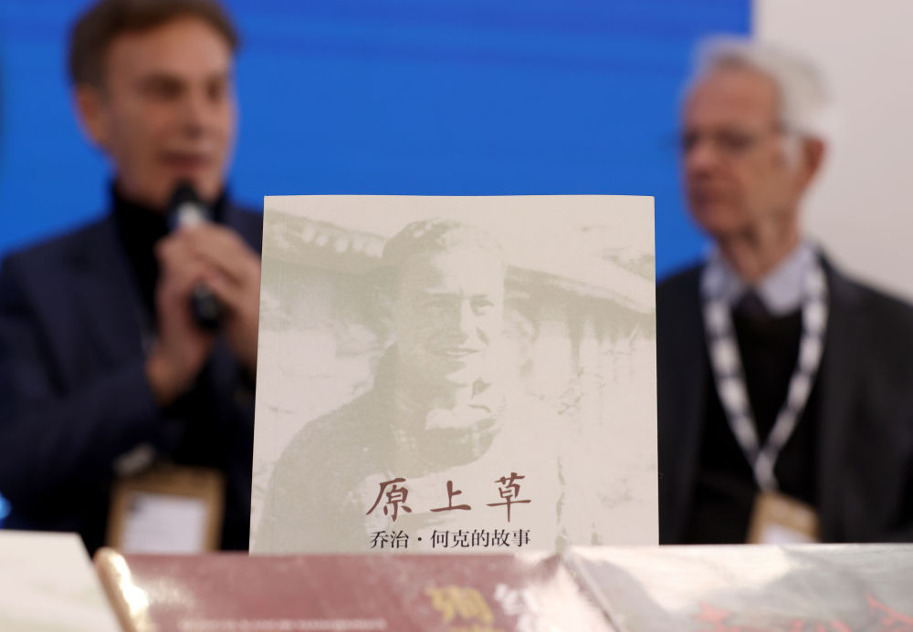 ??這是3月12日在英國倫敦書展上展示的《原上草:喬治·何克的故事》中文版新書。新華社記者 李穎 攝