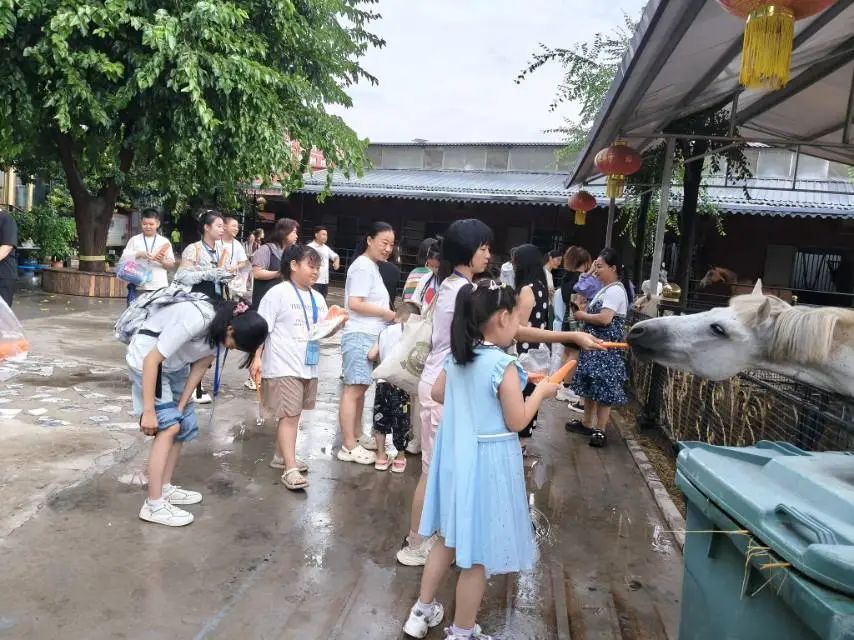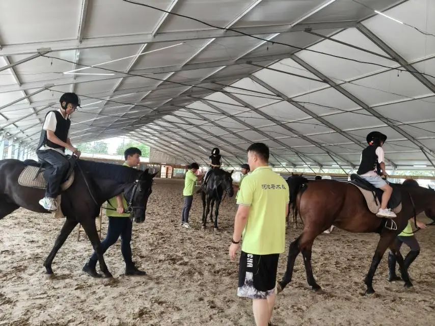 馬兒的品種有哪些?如何喂養?如何與馬兒進行溝通?當日上午,專業馬術老師對參營人員進行了馬術知識科普。大家聽得異常認真,受益匪淺,對馬術知識快速入門。參觀馬廄時,大家和馬兒展開親密互動,撫摸鬃毛,投喂零食,開心不已。在馬術訓練場,大家觀看專業騎手展示跨越障礙、盛裝舞步等表演,并在馬術教練一對一指導下,體驗馬術騎乘。從近距離觀摩到騎上馬背,所有參與者無不心情激動、興奮異常。