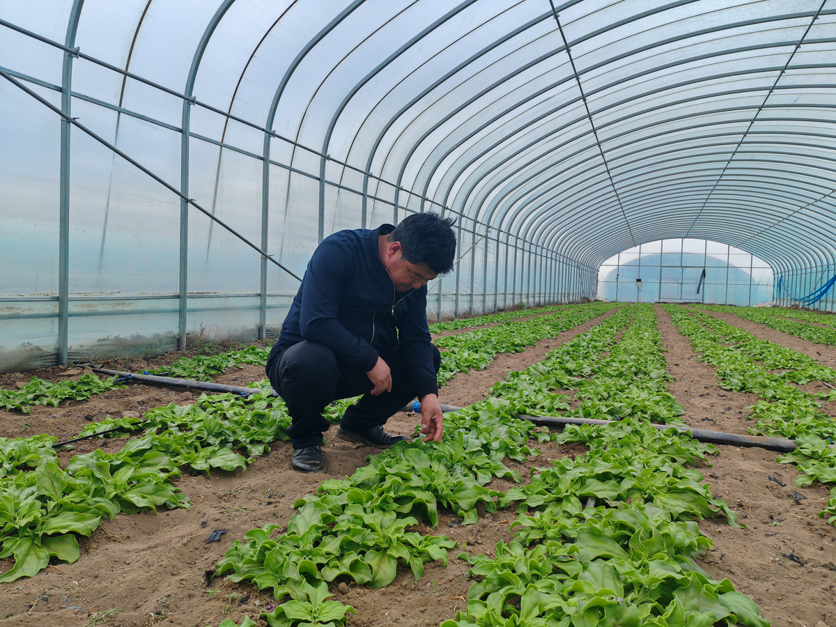 三義美村黨支部書記閻彪告訴記者,在葉菜、果菜生產(chǎn)區(qū)主要種植冰草、茼蒿、芹菜等蔬菜。冰草生長期為1個月,每年大棚可生產(chǎn)4茬,今年200余個大棚種植冰草,一個大棚一年可生產(chǎn)4000公斤。700多個大棚種植茼蒿,每畝地年產(chǎn)茼蒿0.75萬公斤。150個大棚種植芹菜,其中香芹生產(chǎn)2茬,每畝地年產(chǎn)0.85萬公斤;大桿芹為1.2萬公斤。園區(qū)蔬菜采用自產(chǎn)自銷,銷往山東、北京等地,從2022年起,當(dāng)?shù)嘏c外地客商合作,建設(shè)園區(qū)、生產(chǎn)和銷售蔬菜,外地客商在國內(nèi)各大蔬菜交易市場均設(shè)有檔口,冰草主要銷售到山東;芹菜銷售到北京,從5月中旬上市,一直銷售到10月底。園區(qū)建有7個冷庫,蔬菜經(jīng)分揀、預(yù)冷、暫存后,通過冷鏈運輸車一天一夜即可將蔬菜運送到國內(nèi)各地。