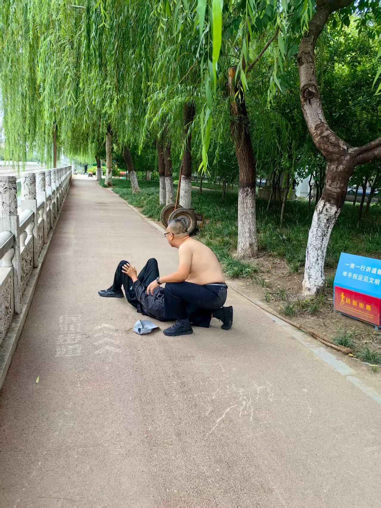 梅磊和喻朝武在交接點附近順著民心河方向查找,當行至躍進路南側約200米位置時發現一名可疑男子。該男子戴著帽子、口罩,身體倚著西側民心河護欄,行跡反常。