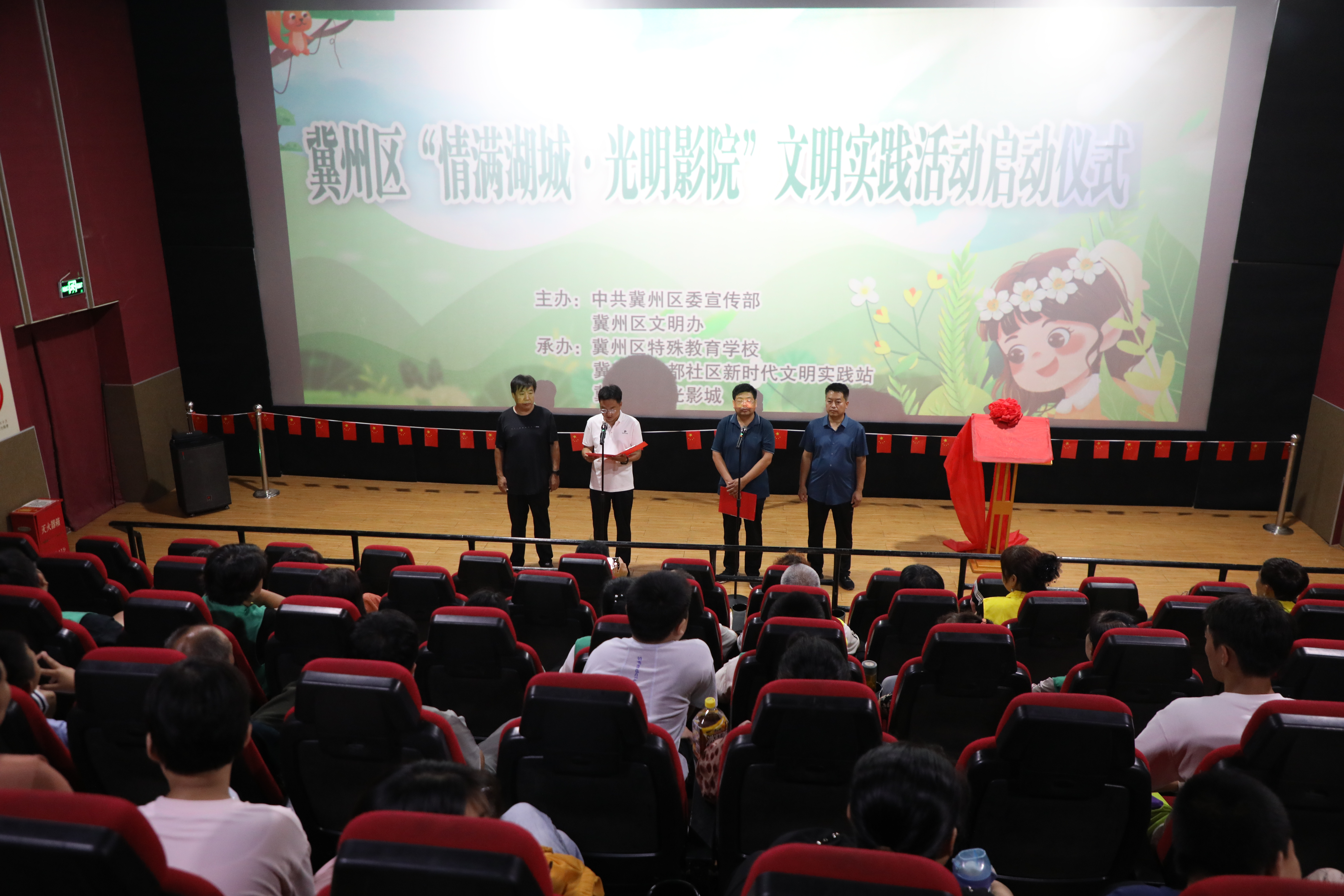 8月25日下午,冀州區“情滿湖城·光明影院”文明實踐活動在時光影城正式啟動。此次活動聚焦視障群體觀影需求,通過無障礙觀影模式,為視障群體搭建起感知觀影橋梁,傳遞文明溫度,既是冀州區新時代文明實踐工作的精準化、特色化的延伸,也是服務特殊群體、傳遞社會溫暖的生動實踐。