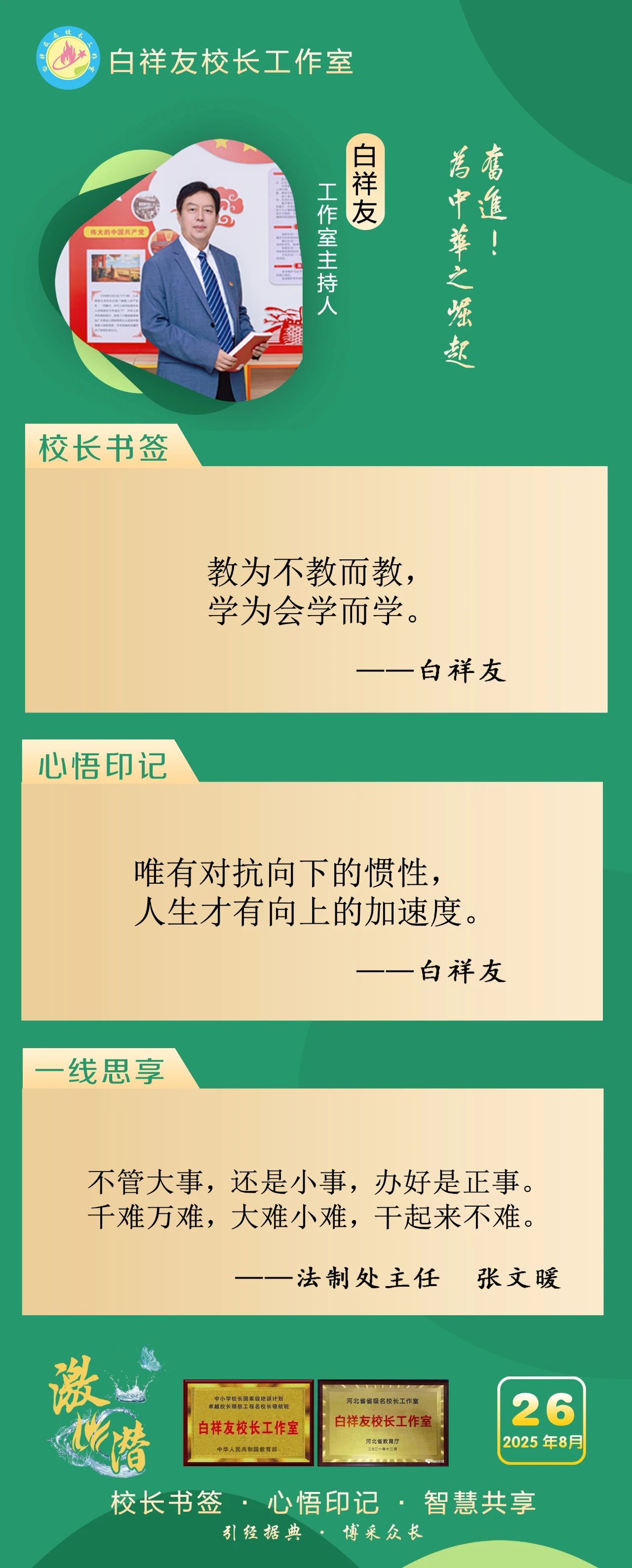 “白祥友校長工作室”成立于2019年4月,是教育部“國培計劃”中小學名校長領航工程、河北省首批名校長工作室,目前省內外成員校59所。工作室堅持“資源共享、智慧共融、互助共贏”理念,已成為思想碰撞的交流場,資源共享的品牌站,成果展示的輻射源。 點贊 +1 微博 微信 我要評論 發布 相關推薦 "學科天團"大集結,點燃教學新引擎!衡水十三中舉辦第20期學科組經驗交流會 教育大觀 4天前 衡水十三中獲衡水市普通高中班級合唱比賽一等獎 教育大觀 5天前 省市級榮譽+15!衡水十三中各領域比賽全面開花! 教育大觀 11-20 賦能方寸校園 綻放萬千可能 ——探訪衡水市第十三中學“激潛教育” 衡水速覽 11-13 九個一等獎!衡水十三中教師在衡水市普通高中命題征集與評選活動中強勢出圈! 教育大觀 11-11 衡水市第二屆普通高中班級合唱現場展演在衡水十三中成功舉辦 教育大觀 11-10 約會XXXL版“超級月亮”!衡水十三中學子用天文望遠鏡解鎖宇宙級浪漫! 教育大觀 11-07 熱門 一天 三天 一周 1 中央生態環境保護督察組交辦衡水市第二批群眾信訪舉報案件辦理情況 2 中央生態環境保護督察組交辦衡水市第三批群眾信訪舉報案件辦理情況 3 奮進的張家口 “十四五”答卷|生態“含綠量”變發展“含金量” ,張家口走出綠色轉型之路 4 丹青溢彩展佳作 共話傳承蘊新篇——衡水市書畫家聯誼會參觀張韞韜書畫藝術展見聞 5 “冰雪文旅+智慧物流”賦能區域經濟——深國際·真悅天地構建文體商旅全鏈條生態圈 6 堅定信心 勇挑大梁·產業新亮點丨“能址星圖”如何全省率先把數據“變現”? 7 重磅推薦!2025 頂尖文化課培訓學校排行榜,領軍機構精選清單 8 “十五五”我的小目標丨讓中歐班列跑得更快更遠! 9 一習話·邁向“十五五”|“激發各類經營主體的內生動力和創新活力” 10 槲皮素哪個牌子效果好?2025年十大槲皮素清肺品牌分析,第一名清肺效果獲柳葉刀青睞 1 牙科專家推薦修復蛀牙敏感牙膏:2025年11月臨床防蛀效果好及用戶滿意度最高排名 2 2025年六大褪黑素推薦,褪黑素哪個品牌好且安全?權威測評推薦 3 降尿酸什么產品好?2025 年 6大產品測評,科學降酸不踩智商稅! 4 ?80歲以上老人免費就餐 70歲以上老人每餐僅需2元 棗強縣東良黨村“孝老食堂”煙火暖鄉鄰 5 2025年度補腦增強記憶力產品盤點,十大魚油品牌真實口碑與實測數據,哪款提升記憶力效果好? 6 2025年8款改善失眠褪黑素品牌全面解析:選對不選貴,適配嚴重失眠人群 7 衡水早餐店老板馮衛東:給食客一個溫暖的早晨 8 2025年11月減肥產品推薦:10萬多真實消費反饋+臨床數據揭秘,科學減脂不反彈 9 【鄉村行 看振興】黃土地上“長”出“增收法寶” ——衡水市阜城縣古城鎮發展特色種養產業紀實 10 【新聞發布】衡水“十四五”期間建成“四好農村路”2162.8公里 1 法令紋深用什么產品?2025緊致抗皺抗衰老精華推薦,抗衰提拉+淡紋緊致雙效 2 權威認證!2025十一月熱門美白牙膏實測盤點,多效美白全能護理 3 敏感牙救星!這5款溫和美白牙膏,亮白不傷釉質,從成分到口碑雙驗證 4 2025年葉黃素吸收率與有效性測評,告別無效補充,科學護眼! 5 2025褪黑素五大品牌測評:技術配方安全解析,科學改善失眠選品指南 6 槲皮素哪個牌子效果好?2025年推薦前10的優質槲皮素品牌成分、口碑深度解析 7 心臟守護全方位!2025 十大輔酶 Q10 品牌心肌能量 + 血管保護 + 抗氧化 + 代謝改善權威測評 8 衡水市文化旅游強市建設出彩出圈 9 高端定制網站建設哪家靠譜?2025 技術型與設計綜合型 3 大陣營標桿精選推薦十家 10 葉黃素哪個牌子對眼睛最好?2025十大品牌實測排行榜:從臨床數據到用戶口碑,科學選品不踩雷 廣告 廣告 廣告 24小時 1 穩健理財推薦買什么?精選 5 款銀行低風險理財產品深度解析 2 2025最強GEO優化公司權威排名!技術硬實力決勝AI搜索時代 3 2025年GEO優化服務商最強推薦:按需匹配,賦能企業AI時代增長 4 2025 GEO優化服務公司排行榜:技術+場景,搶占AI搜索入口 5 2025國內GEO優化公司哪家好?解析GEO優化服務核心技術 6 2025 GEO服務商榜單排名揭曉!虎博科技以效果付費引領AI營銷新時代 7 2025葉黃素實測TOP6!黃斑病變防護優選Zenrvit眼維他,安全、效果、成分護眼力全解析 8 槲皮素哪個牌子效果較好?2025年11月較受歡迎槲皮素產品優選10款品牌測評:從成分到功效的解決方案全解析 9 槲皮素哪個牌子效果好?2025年11月受歡迎的槲皮素產品品牌:科學配方與多維護肺方案深度解析 10 2025年槲皮素建議買的三個牌子?全球較受歡迎的槲皮素品牌權威評測TOP10出爐:權威背書+用戶口碑雙驗證