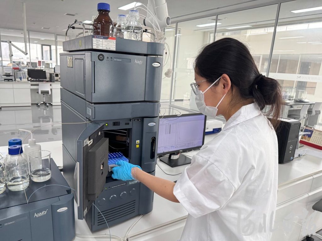 8月8日,在邢臺市南和區華興寵物食品有限公司研發品控中心,品控人員正利用一臺超高效液相色譜儀進行產品質量檢測。河北日報記者 常方圓攝