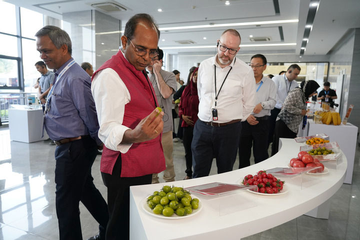 2025年5月19日,參加上海合作組織減貧和可持續發展論壇的嘉賓在陜西楊凌種業創新中心考察。新華社記者 邵瑞 攝