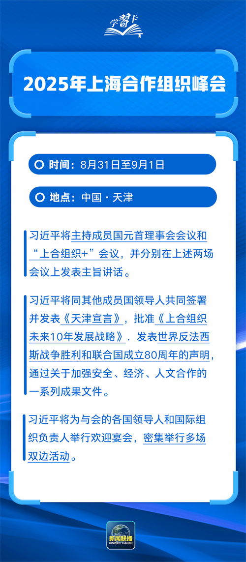 8月31日至9月1日,2025年上海合作組織峰會將在天津舉行。這是中國第五次主辦上合組織峰會,也是上合組織成立以來規模最大的一次峰會。