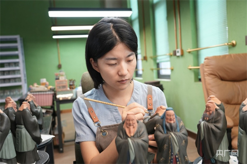 “我已經(jīng)在泥人張彩繪部門工作4年了。在這里,我不僅感受到百年技藝的傳承,也體味到了文化精神的賡續(xù)。”鄭茹月說。