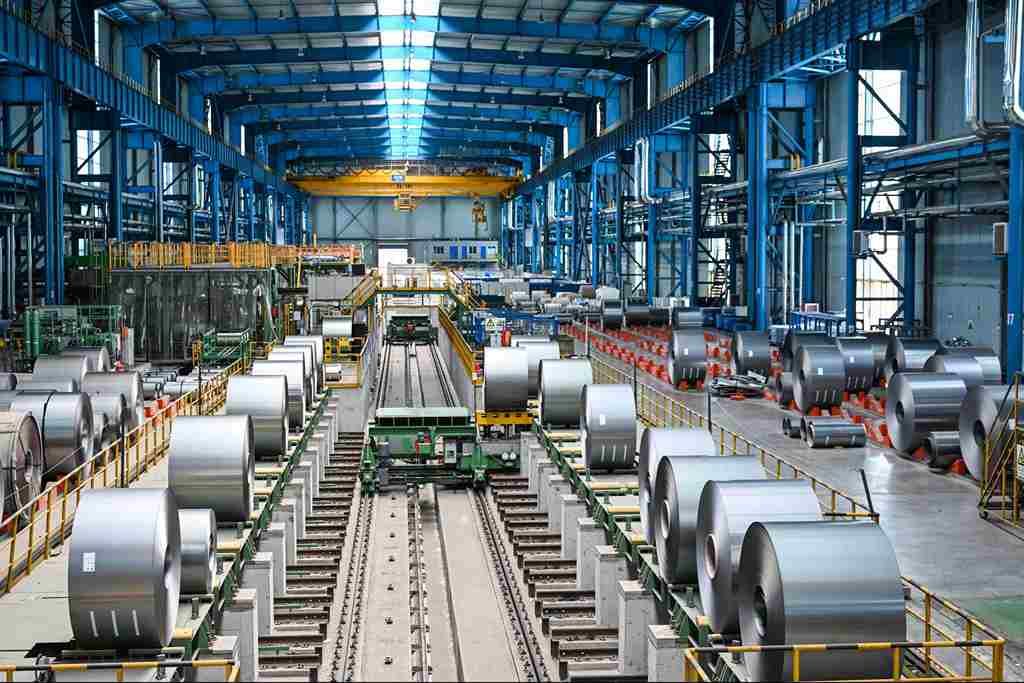 河鋼集團唐鋼公司員工在查看高強汽車板生產線。