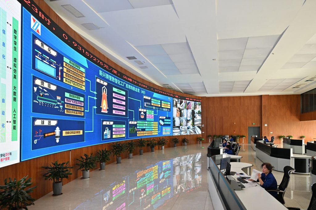 在新興鑄管武安本級智能管控中心,工作人員正在進行數據分析。