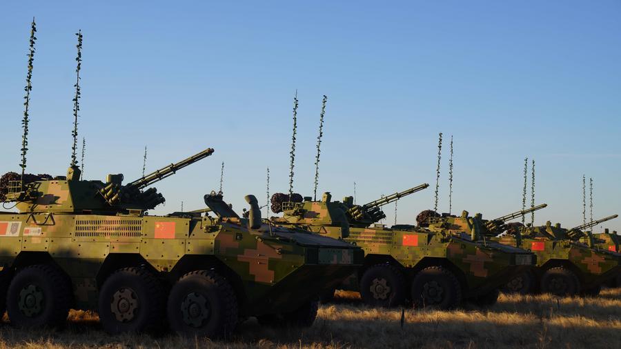??2021年9月20日,在俄羅斯奧倫堡州東古茲靶場舉行的“和平使命-2021”上海合作組織聯合反恐軍事演習開幕式上,中方參演部隊接受檢閱。新華社記者梅世雄攝