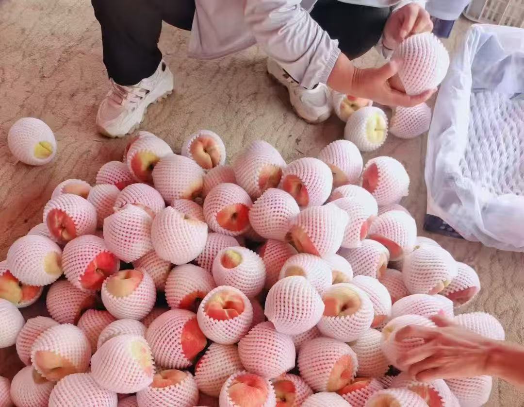 桃林深處,還有十幾個村民正抬著塑料筐忙碌。47歲的史大姐是鄰村南周堡村的村民,她擦了擦額頭的汗水說:“我們摘桃按小時算,一個小時十來塊錢,一天也不少掙,這可比出去打工強多了!”據辰時鎮政府統計,果品交易季帶動周邊7個村百余名村民臨時就業,人均增收超3000元。