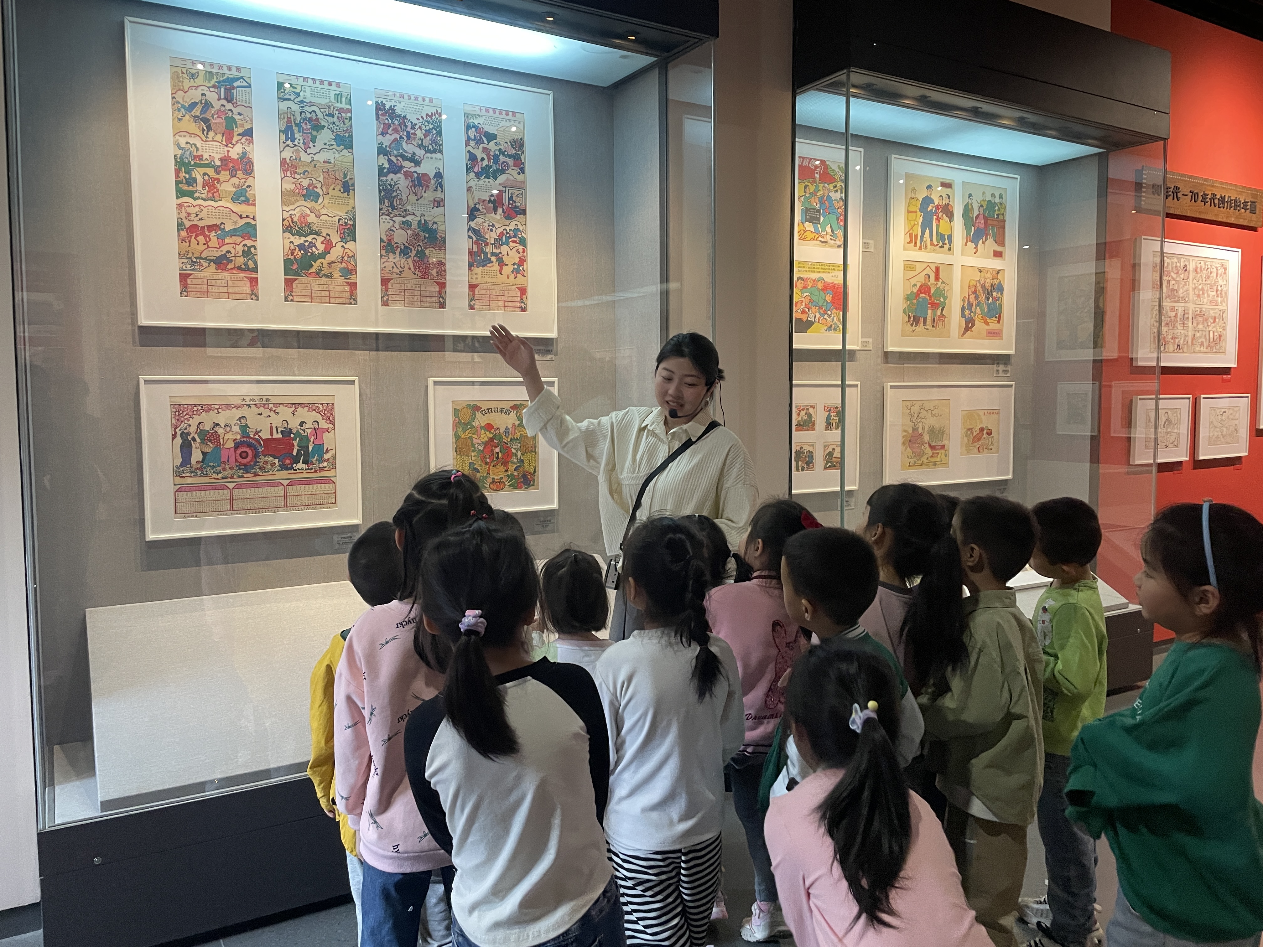 李麗告訴記者,近年來,武強年畫博物館年均接待青少年參觀者15萬人次。博物館還開展了“小小講解員”“繪畫體驗班”以及紅色主題參觀等活動,吸引孩子們走進年畫博物館,在傳承中華優秀傳統文化的同時,接受愛國主義教育。“小小講解員”們戴著擴音器,用童聲講述著《打日本救中國》背后的故事;體驗區里,孩子們小心翼翼地在年畫紙張上涂抹墨色;在版畫雕刻展示區,他們仔細觀察著雕刻師傅拿刻刀雕刻紋路……“每一道刻痕都是歲月的痕跡,每一抹色彩都是民族的底色!”他們漸漸讀懂了年畫背后的擔當和價值。