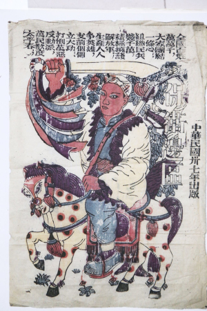 全民族抗戰爆發后,南關村一大批年畫作坊被日軍關停,大量年畫被燒毀。彼時,年畫藝人們拿起畫筆和刻刀做刀槍,投入火熱的抗日救亡斗爭中。在敵人的封鎖下,年畫物資匱乏,印刷用的有光紙需要從敵占區購運,印畫的案子只得用舊牌匾等來代替。在這樣危險而艱苦的條件下,他們在敵人一次次的掃蕩中,被迫背著畫版和工具迂回轉移,秘密創作和印制抗日年畫、宣傳畫,有的甚至在斗爭中獻出了寶貴的生命。興隆畫店的師徒就是在保護轉移抗日年畫時犧牲的。