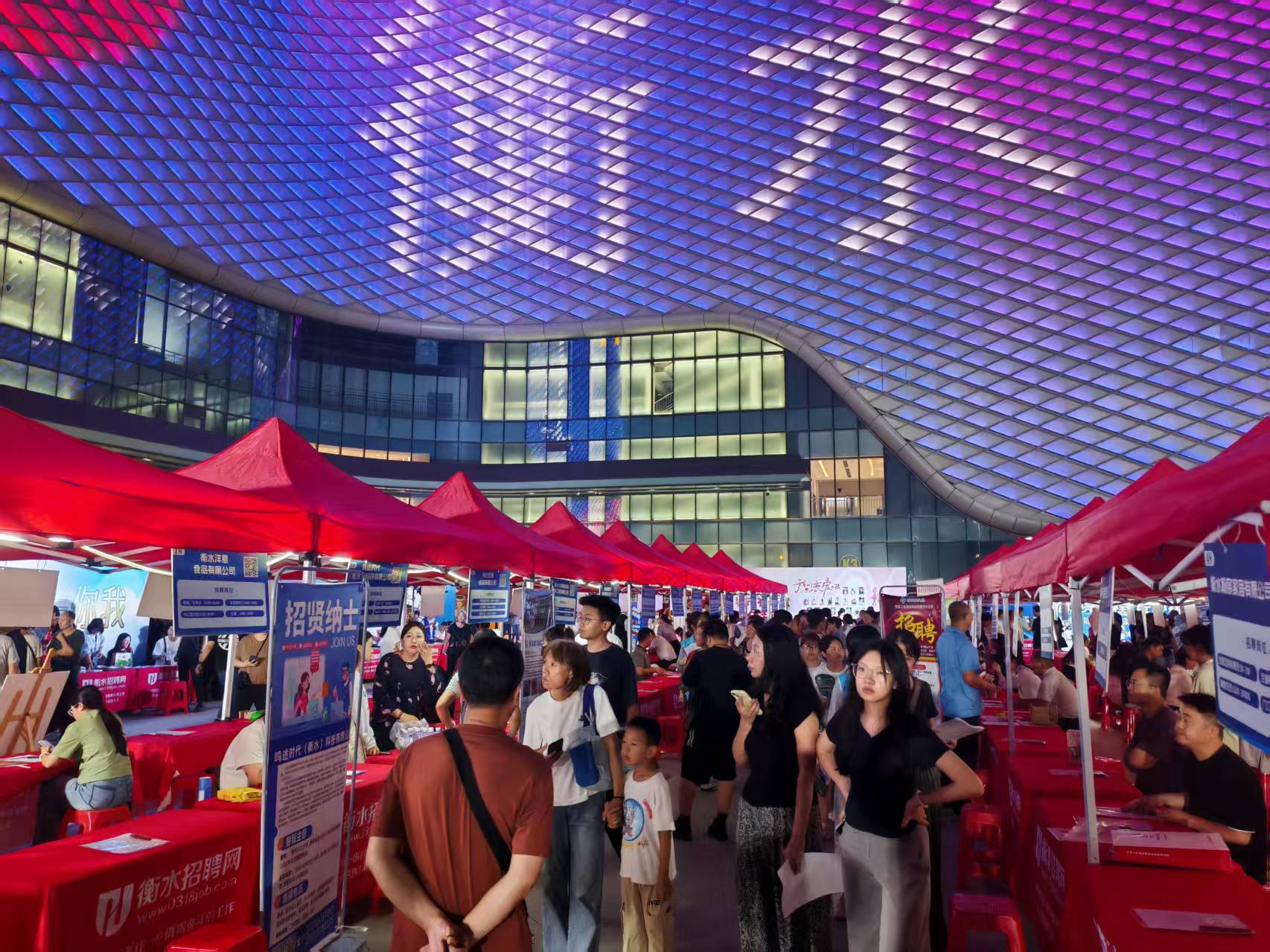 此次人才夜市由市人社局和市總工會聯合舉辦。作為“桑梓情 心永衡”衡水學子回歸計劃的品牌活動,我市自今年7月起,搶抓高校畢業季黃金期,陸續在市區愛琴海購物公園廣場、萬達廣場等主要商圈開展該系列活動。這一創新就業服務模式,利用商圈夜市人員密集特點,將招聘場景與夜生活場景相融合,為高校畢業生等青年量身打造輕松的招聘環境。夜場模式更貼合青年人的心理需求和作息習慣,實現企業“挑燈納賢”與求職者“逛街擇業”的雙向奔赴,也是我市2023年以來,依托“桑梓情 心永衡”衡水學子回歸計劃品牌,在全省率先開展的“人才夜市”系列招聘活動。