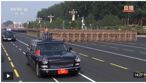 在雄壯的軍樂聲中,習近平乘車沿著寬闊的長安街,依次檢閱徒步方隊和裝備方隊。