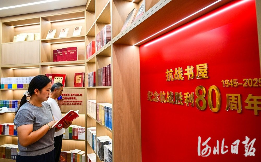 8月31日,游客在涉縣八路軍一二九師紀念館“抗戰書屋”閱讀。