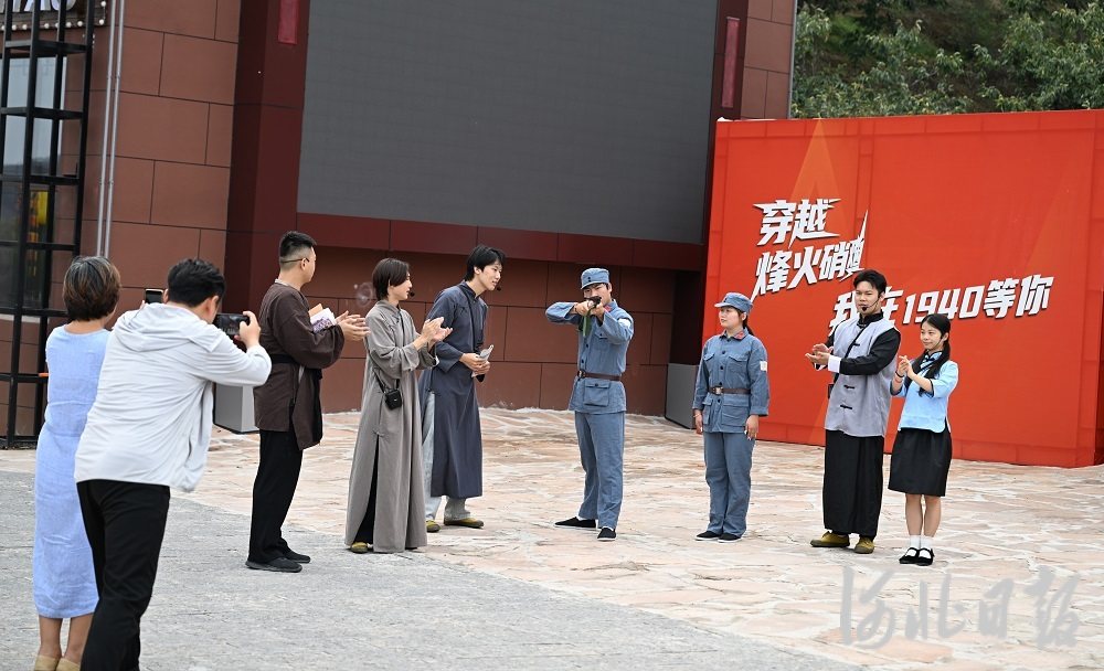 9月2日,游客觀看由邢臺抗大陳列館編排的行進式演出《上抗大》。