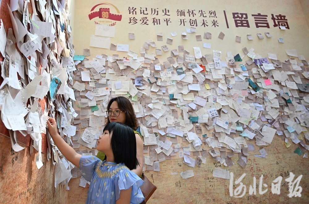 8月31日,河北博物院,市民在河北抗戰圖片檔案展留言墻留言。