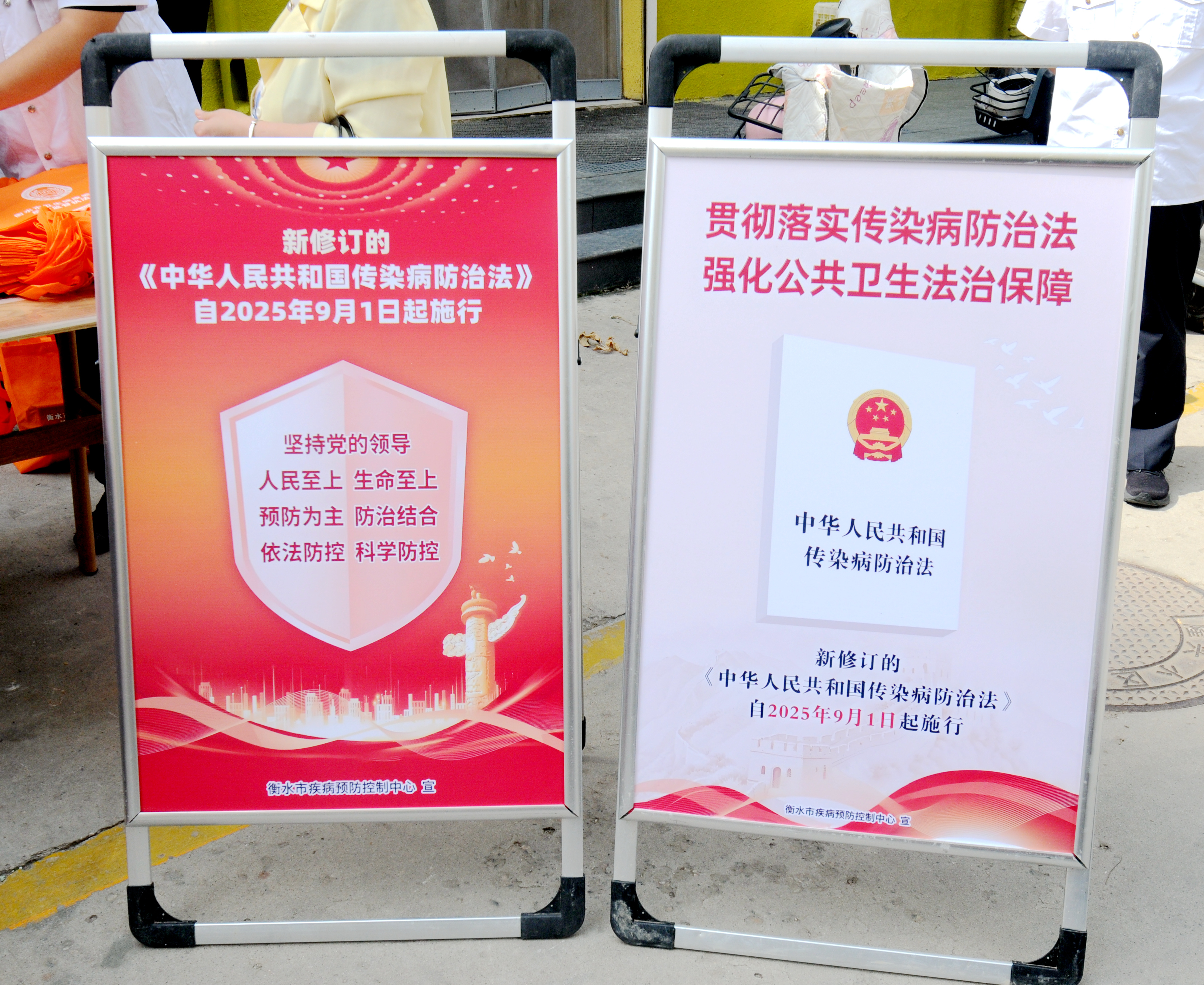 9月1日,新修訂的《中華人民共和國傳染病防治法》正式實施。9月2日,衡水市疾控中心在衡水高新區隆興小區開展《中華人民共和國傳染病防治法》宣傳活動。活動通過發放宣傳手冊、現場講解、互動答疑等形式,深入普及《中華人民共和國傳染病防治法》核心內容,并重點推廣兩項與居民健康密切相關的衛生行業標準,進一步強化社區傳染病防控能力。