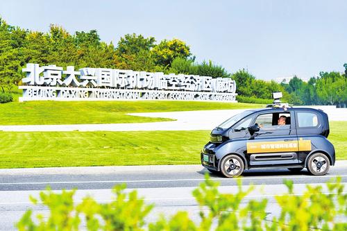 9月2日,智能巡邏車在臨空經濟區(廊坊)街頭巡邏。 本組圖片由本報記者王偉攝