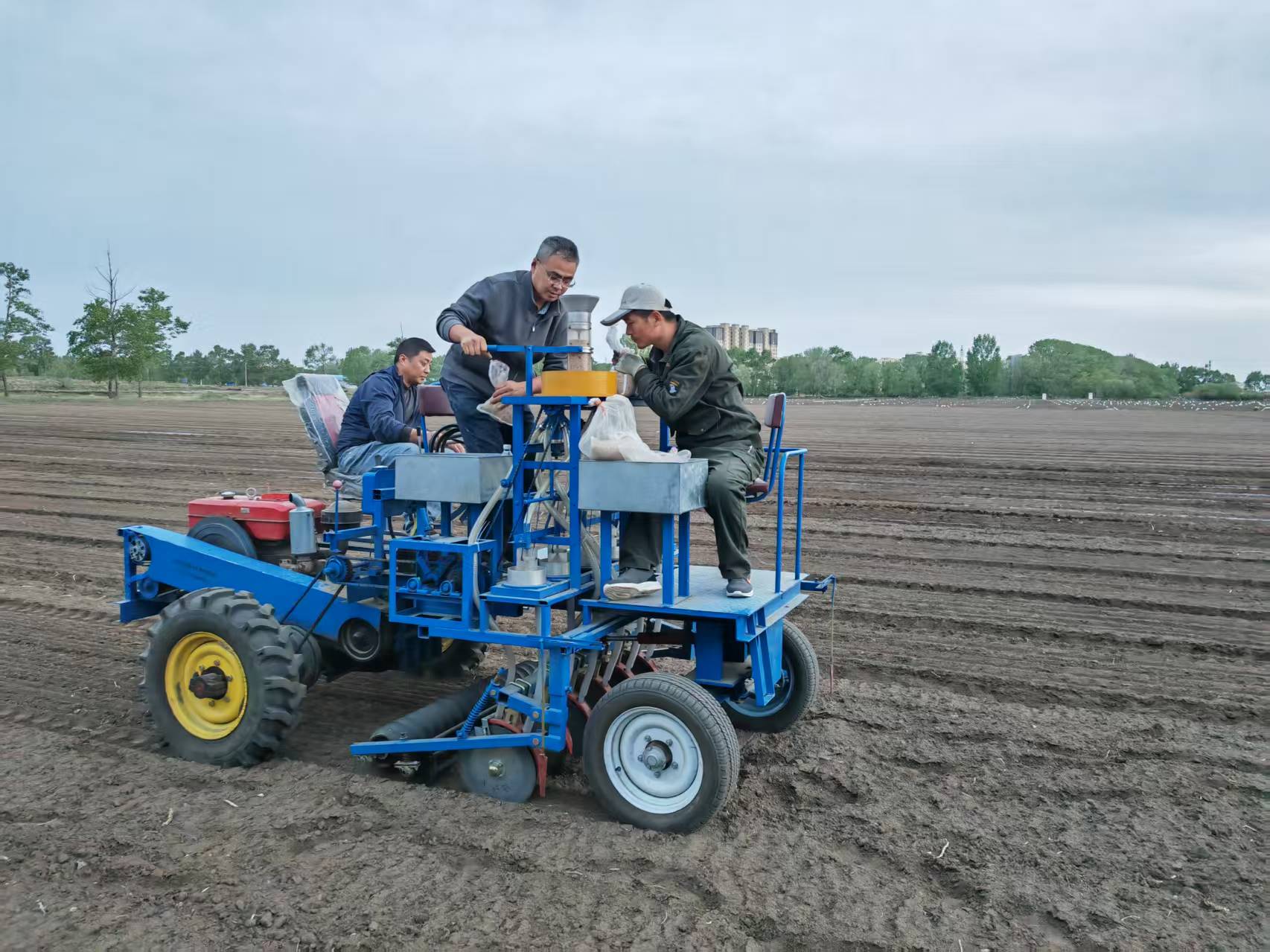 圖片說明:燕麥育種團隊采用小區(qū)播種機進行小區(qū)試驗播種
